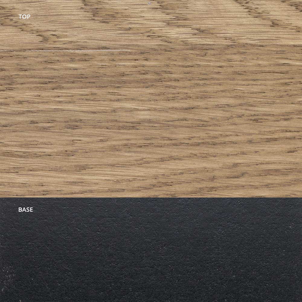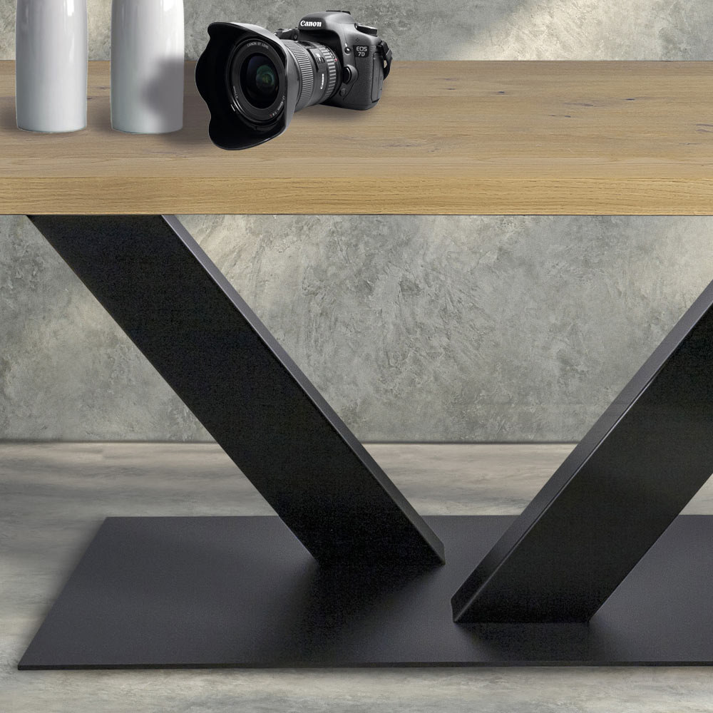 Tavolinë prej druri e veshur me nyje lisi të rimeso dhe me bazë metalike Prodhuar në Itali.
