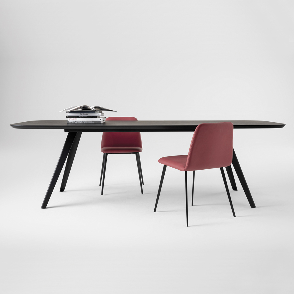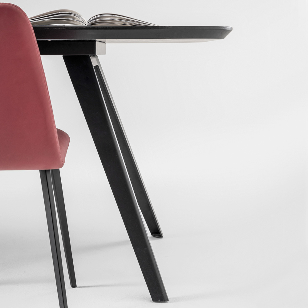 Tavolinë ngrënie e prodhuar në Itali me bazë të zezë metalike të llakuardhe majë druri hiri . Me një strukturë solide dhe forma të rrumbullakosura, ky aksesor arredimi ka një dizajn jashtëzakonisht të zhdërvjellët , i cili e bën atë të përshtatshëm si për momentet e punës, ashtu edhe për dreka dhe darka të këndshme, të dedikuara për shoqëri brenda shtëpisë tuaj. Falë madhësisë së saj imponuese, ajo arrin të pushtojë qendrën e dhomës, duke përfaqësuar protagonistin e padiskutueshëm të mobiljeve rreth të cilave të krijojë një harmoni të përsosur. Përdorimi i lëndëve të para me cilësi të lartë lejon marrjen e një tryeze të guximshme dhe rezistente dhe në të njëjtën kohë një zgjidhje elegante dhe moderne mobilimi rreth së cilës t'i përkushtohesh vetes momenteve të mrekullueshme të ndarjes.