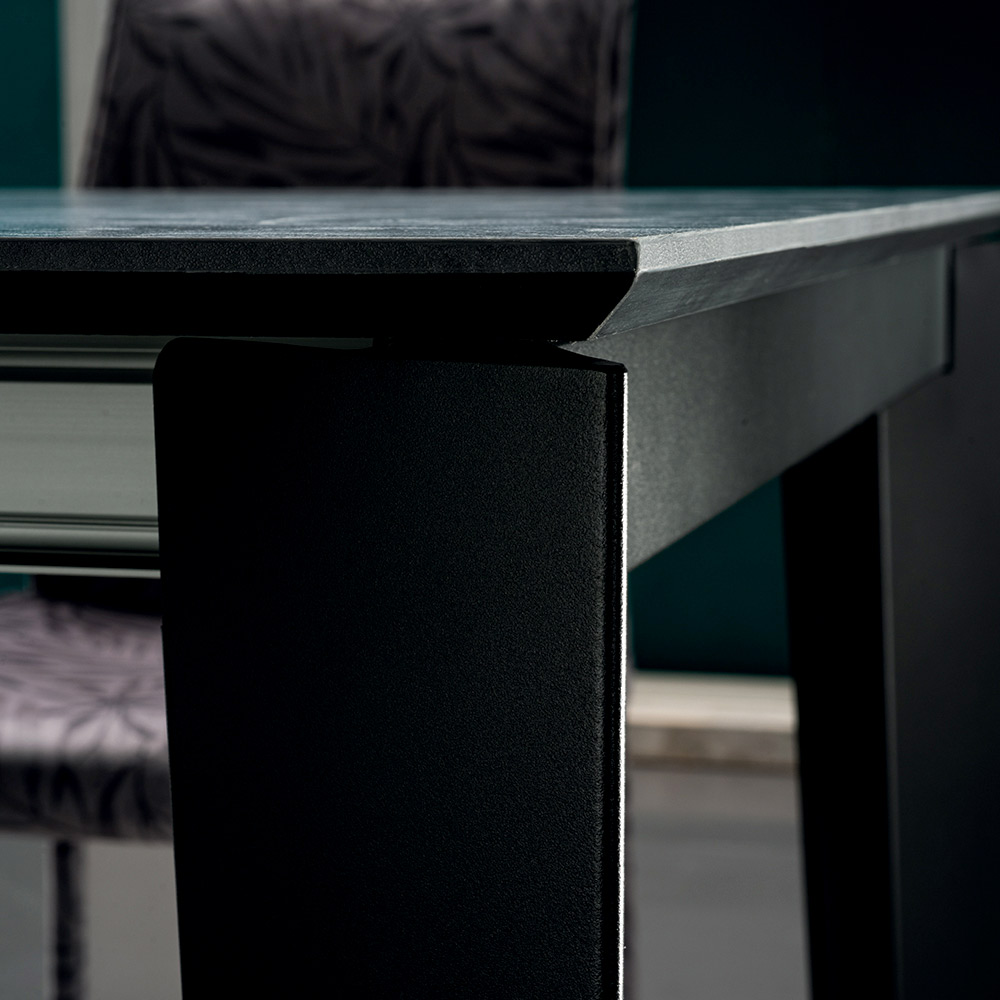 Tavolinë ngrënieje me pjesën e sipërme të zgjatshme në laminat HPL me efekt guri Prodhuar në Itali.