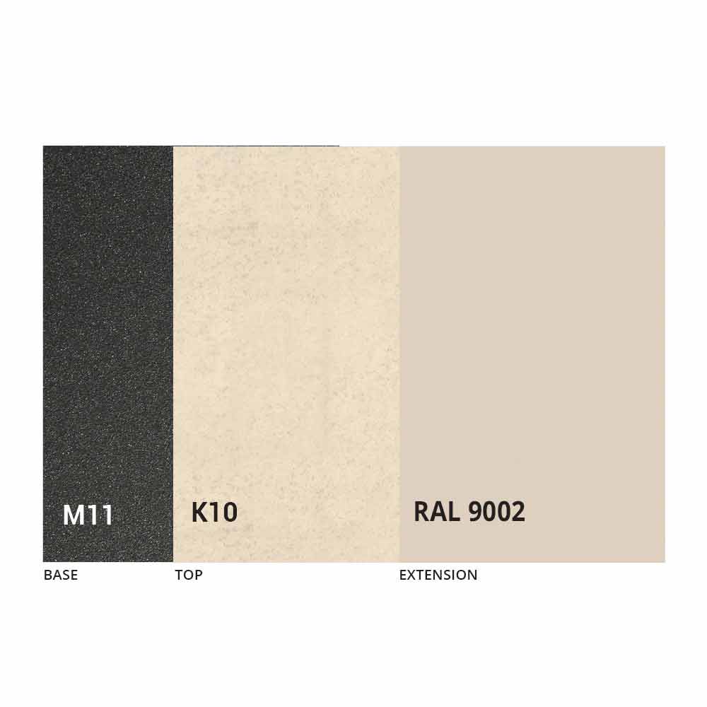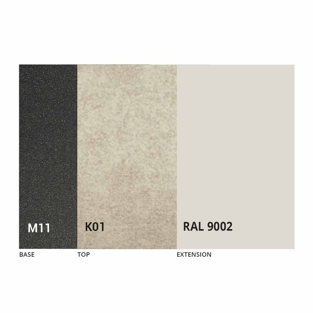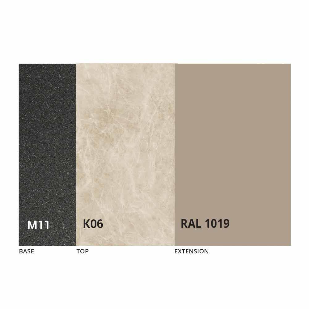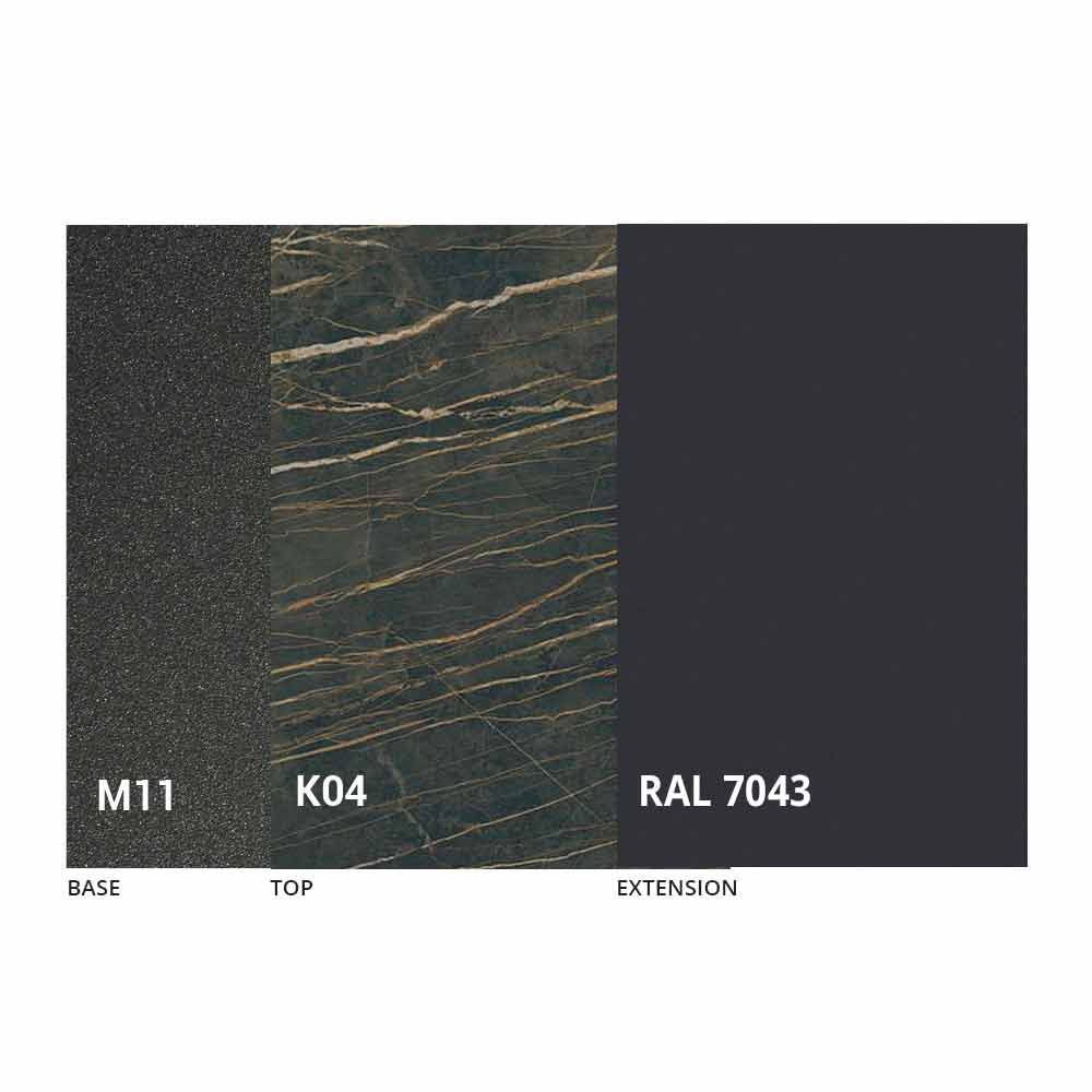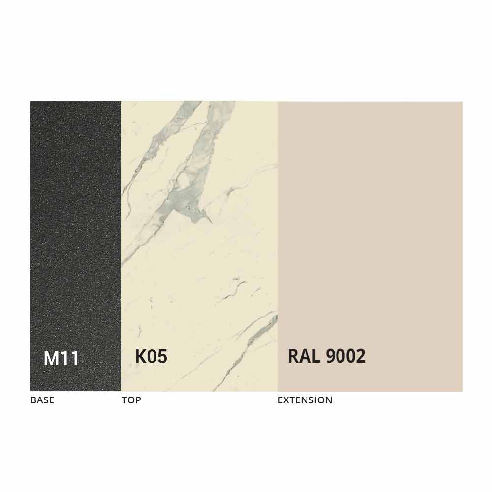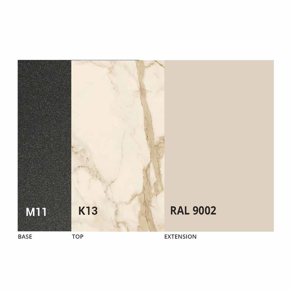 NB: kur hapni tryezën, është e nevojshme të ngrini shtrirjen, ta vendosni në nivelin e sipërm dhe, vetëm atëherë, ta hapni. Pjesa e sipërme dhe baza e tavolinës mund të personalizohen me materiale të ndryshme dhe përfundime të mostrës ose llak RAL. Për informacion, na kontaktoni duke përdorur formularin e duhur " Kërko informacion" .