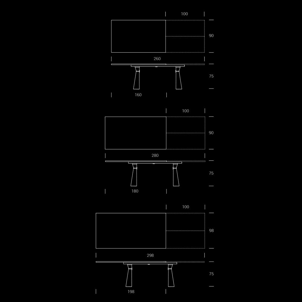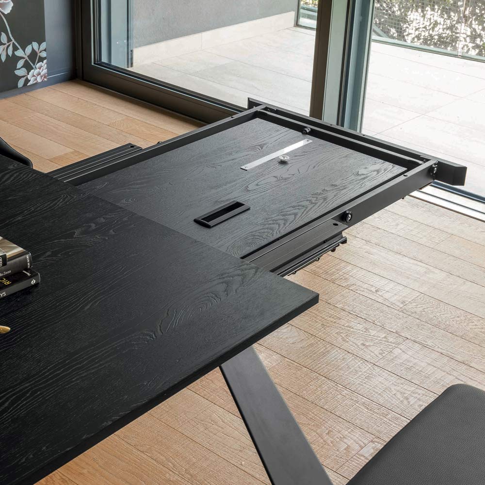 zgjatimin e brendshëm të palosshëm me hapje të sinkronizuar, lejon që pjesa e sipërme të zgjatet deri në një gjatësi maksimale prej 298 cm për të akomoduar kështu një numër më të madh njerëzish për dreka dhe darka. në shoqëri. Pasi mbyllet, zë sërish hapësirë minimale, duke ofruar funksionalitet maksimal së bashku me një