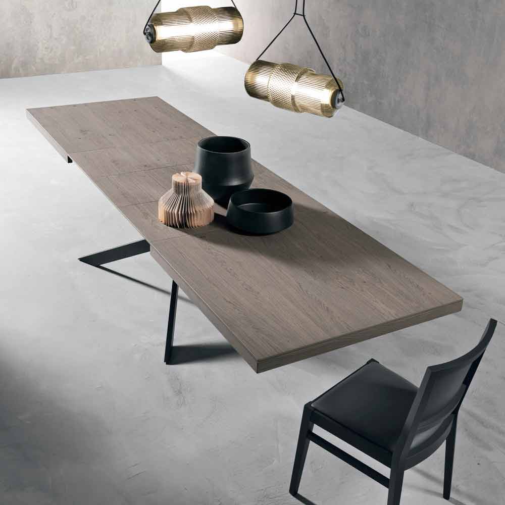 Oncino është tavolina drejtkëndore e zgjatur e karakterizuar nga një strukturë metalike me tuba të kryqëzuar dhe këmbë të rregullueshme në një finiturë antraciti të ngulitur në mikro dhe një kornizë alumini të lyer të anodizuar. Pjesa e sipërme ka një trashësi 18+42 mm dhe është e punuar me rimeso lisi me nyje; Nga rrëshqitja qendrore e tij është e mundur të nxirren 3 zgjatimet prej 45 cm secila që gjenden brenda kornizës.