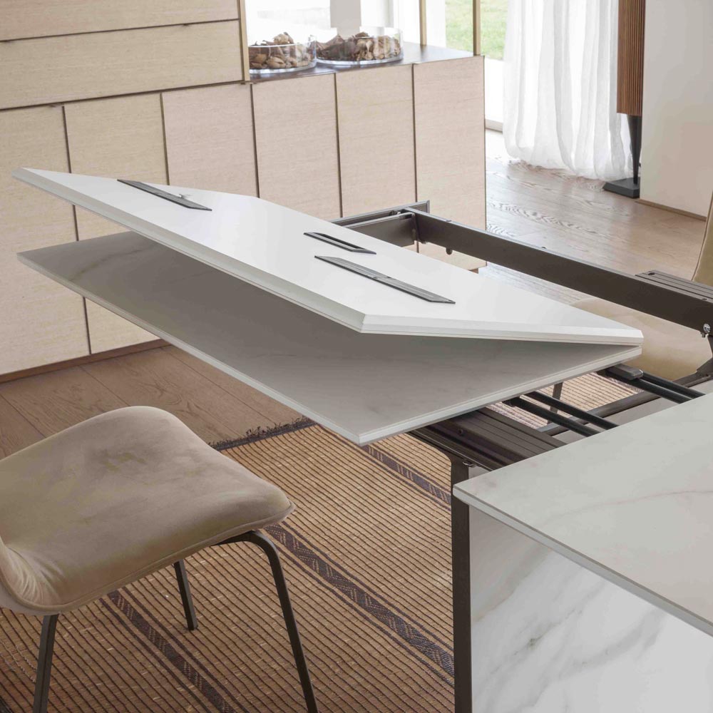 Tavolinë e zgjerueshme për ambiente të brendshme prej qeramike, e prodhuar në Itali
