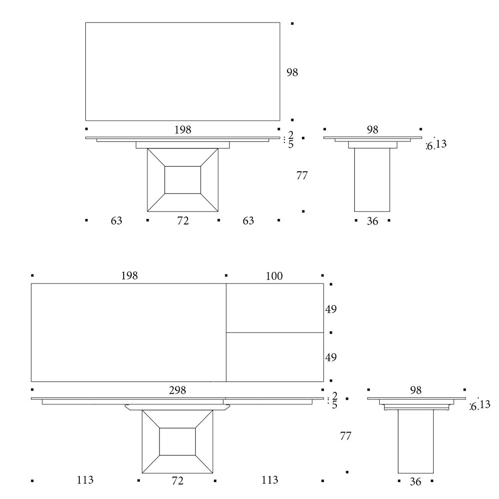 Shënim: Për tavolinën bazë janë të disponueshme edhe përfundime shtesë. Një tavolinë fikse është gjithashtu e disponueshme.
