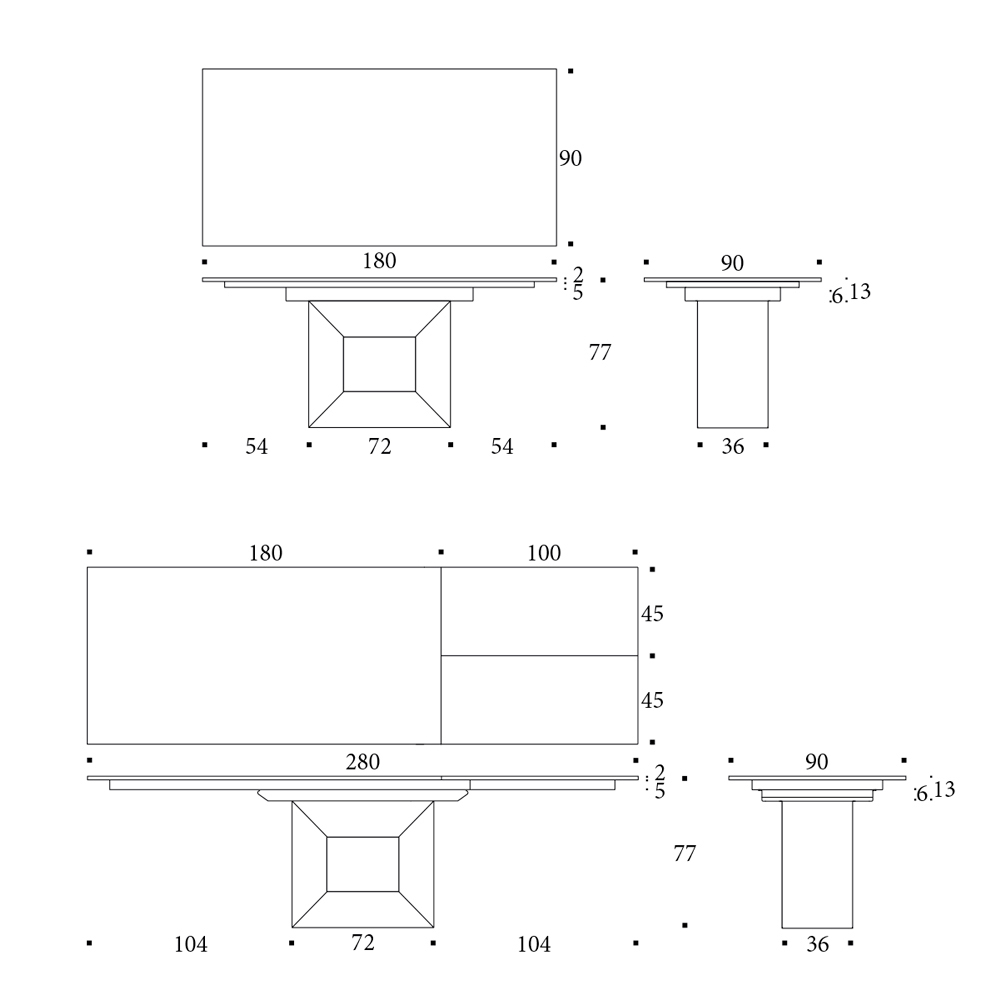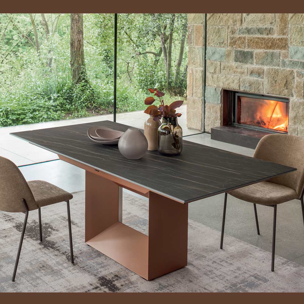 Tavolinë e zgjerueshme për ambiente të brendshme prej qeramike dhe metali, e prodhuar në Itali