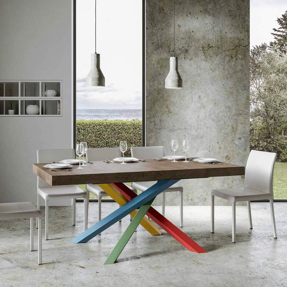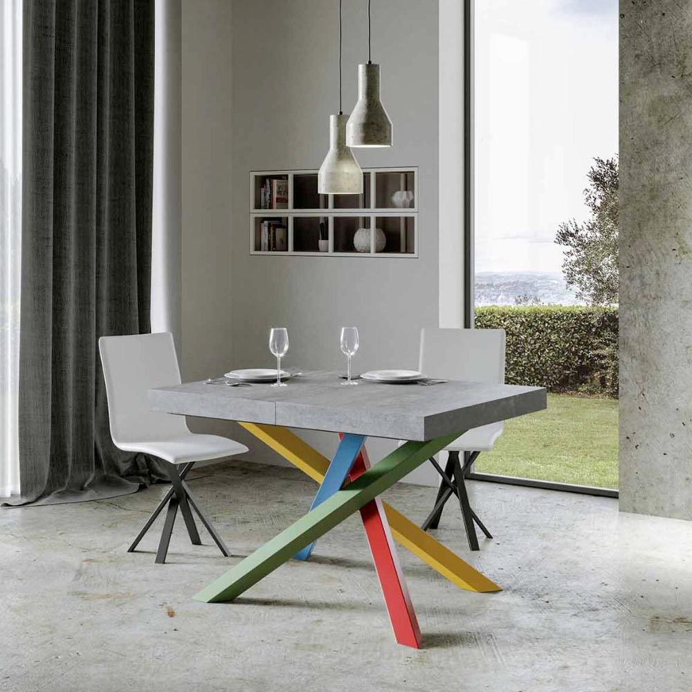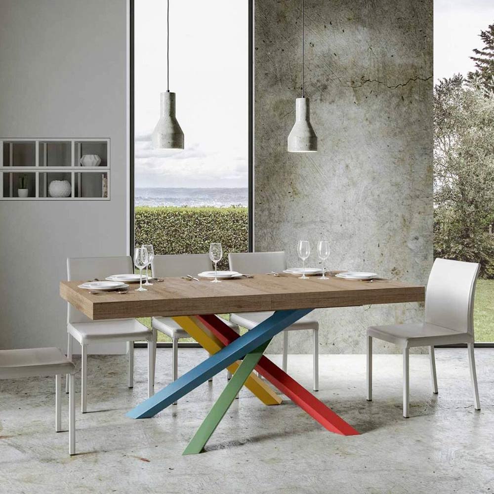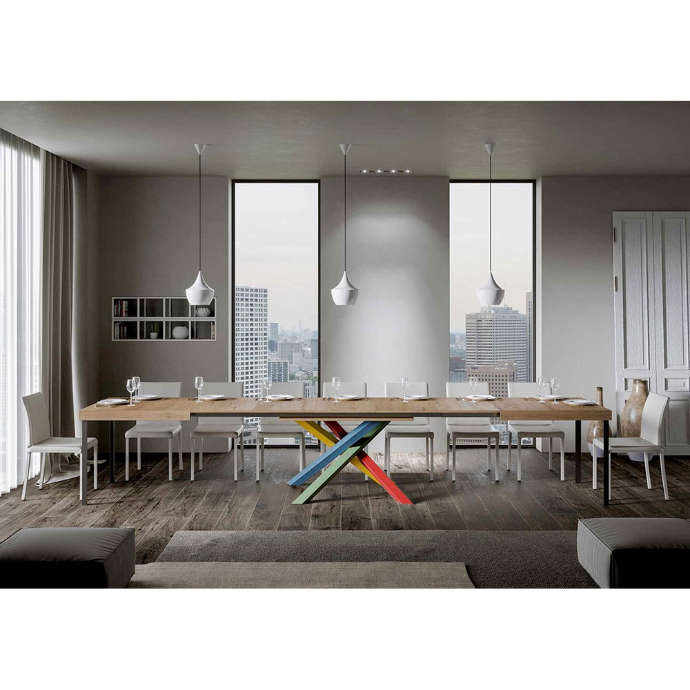 Zbuloni tryezën e zgjerueshme , një kryevepër e dizajnit modern që shquhet për siluetën e saj unike dhe funksionalitetin e gjithanshëm . Pjesa e sipërme prej druri rrit ndriçimin e hapësirave, duke ofruar një sipërfaqe të lëmuar dhe të fortë që të bën të mundur përdorimin e përditshëm. Baza e tavolinës është një spektakël i vërtetë gjeometrik, me këmbë të kryqëzuara që ndërthuren në një lojë ngjyrash. Kombinimi i propozuar është: Këmba 1: E kuqe karmine (RAL 3002). Këmba 2: Jeshile e verdhë (RAL 6018). Këmba 3: Blu e largët (RAL 5023). Këmba 4: Sinjali i verdhë (RAL 1003). Ngjyrat RAL janë opake . Ky kombinim jo vetëm që shton një prekje vitaliteti në dizajn, por gjithashtu siguron stabilitet dhe rezistencë. Mekanizmi i zgjerimit të tavolinës është sa i thjeshtë aq edhe i zgjuar , duke ju lejuar ta transformoni këtë pjesë elegante të mobiljeve nga një tavolinë praktike për katër në një zonë mikpritëse për të organizuar darka dhe takime më të mëdha.