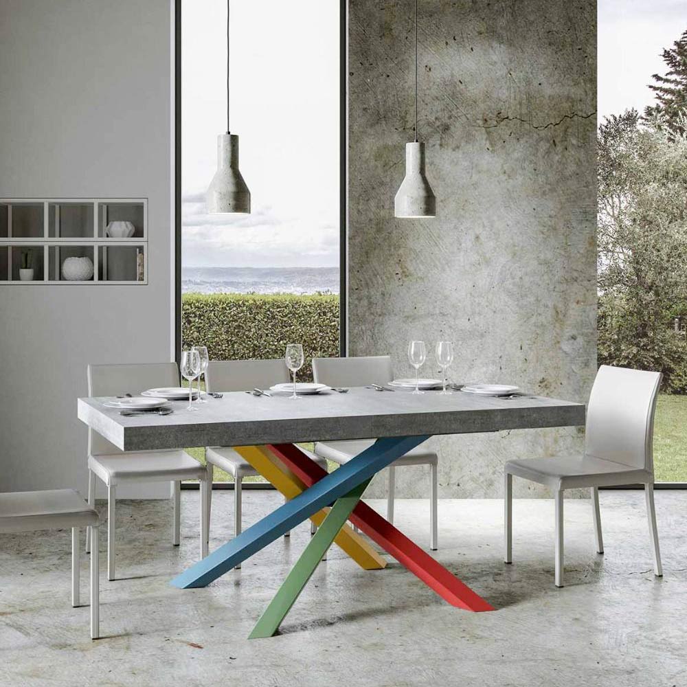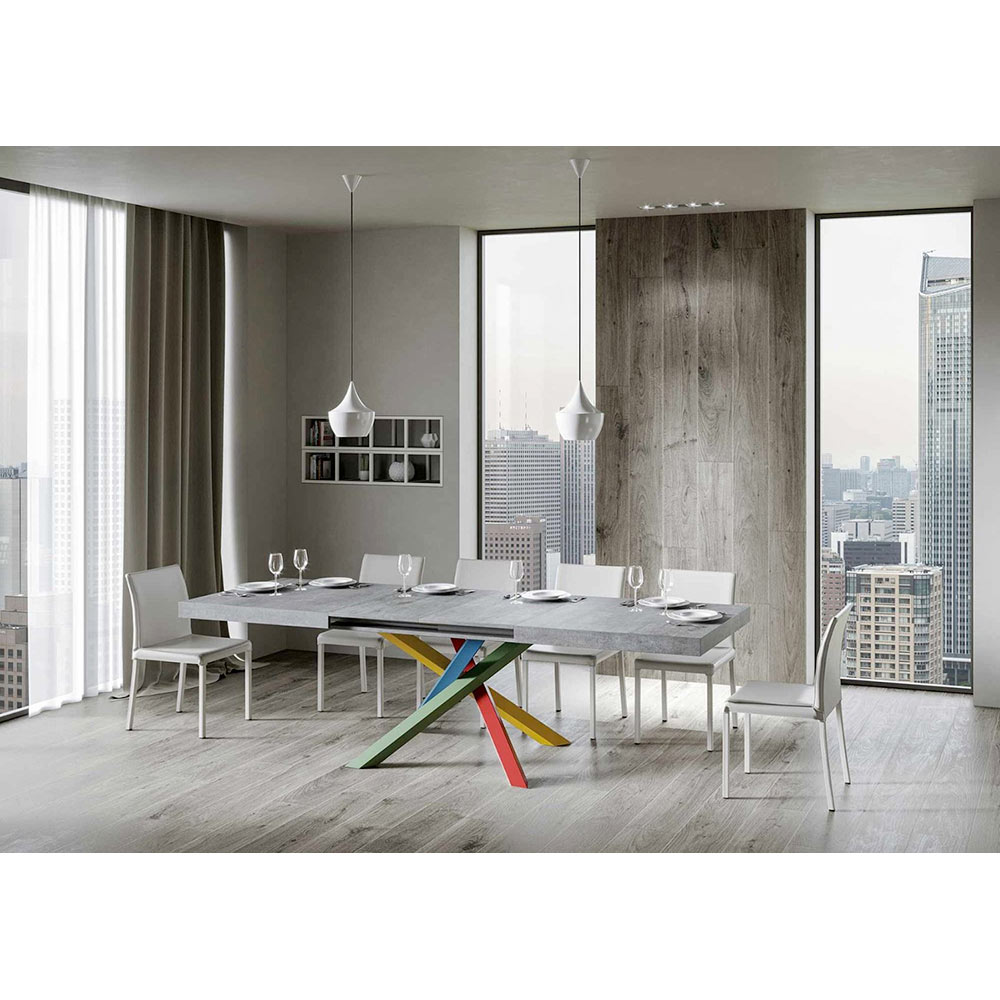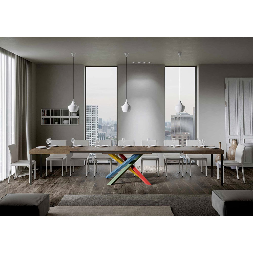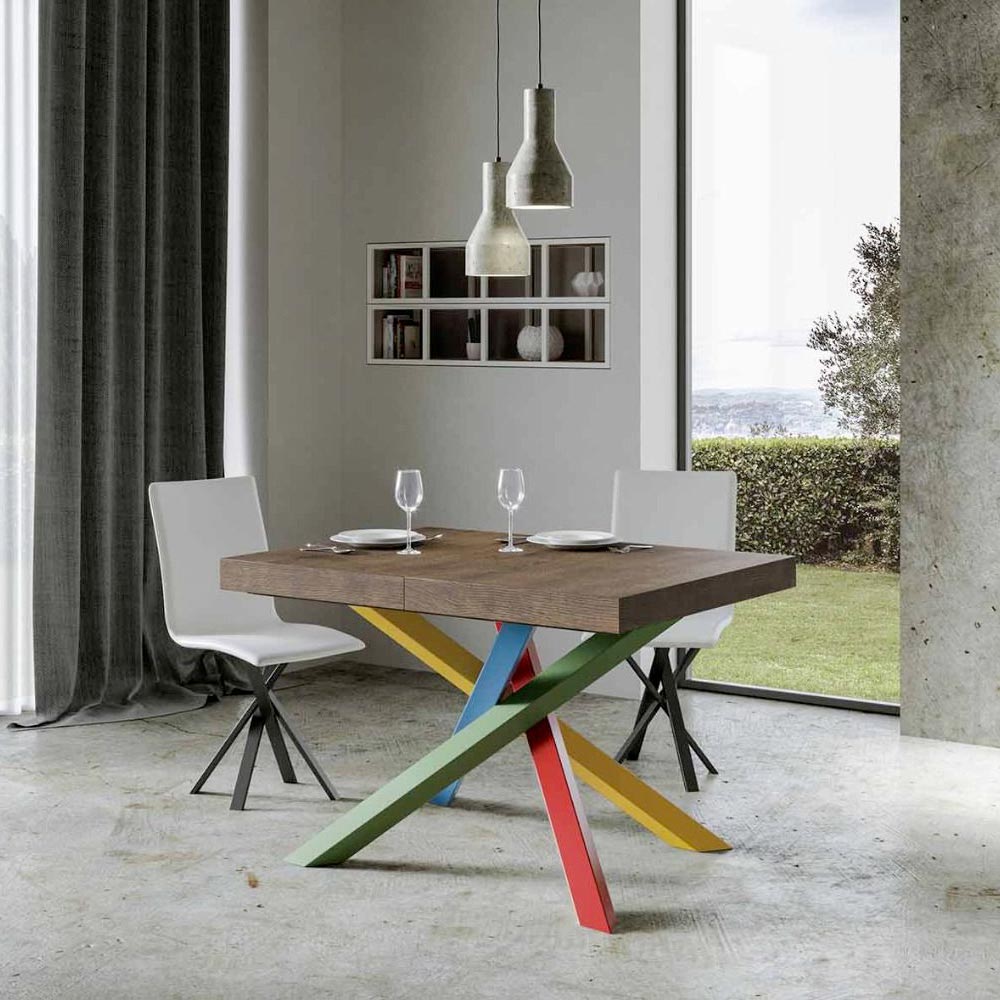 Zbuloni tryezën e zgjerueshme , një kryevepër e dizajnit modern që shquhet për siluetën e saj unike dhe funksionalitetin e gjithanshëm . Pjesa e sipërme prej druri rrit ndriçimin e hapësirave, duke ofruar një sipërfaqe të lëmuar dhe të fortë që të bën të mundur përdorimin e përditshëm. Baza e tavolinës është një spektakël i vërtetë gjeometrik, me këmbë të kryqëzuara që ndërthuren në një lojë ngjyrash. Kombinimi i propozuar është: Këmba 1: E kuqe karmine (RAL 3002). Këmba 2: Jeshile e verdhë (RAL 6018). Këmba 3: Blu e largët (RAL 5023). Këmba 4: Sinjali i verdhë (RAL 1003). Ngjyrat RAL janë opake . Ky kombinim jo vetëm që shton një prekje vitaliteti në dizajn, por gjithashtu siguron stabilitet dhe rezistencë. Mekanizmi i zgjerimit të tavolinës është sa i thjeshtë aq edhe i zgjuar , duke ju lejuar ta transformoni këtë pjesë elegante të mobiljeve nga një tavolinë praktike për katër në një zonë mikpritëse për të organizuar darka dhe takime më të mëdha.