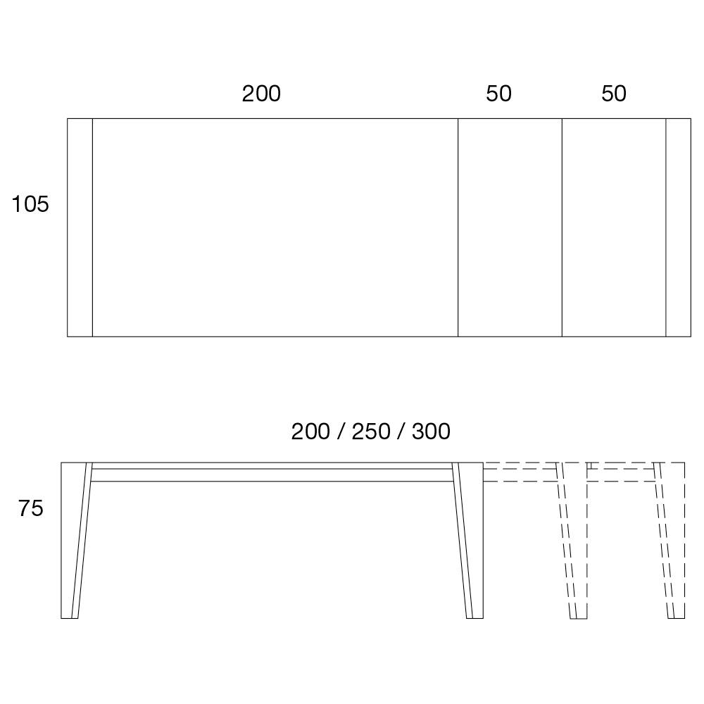 L 200-250-300 x D 105 x H 75 cm - 2 shtesa