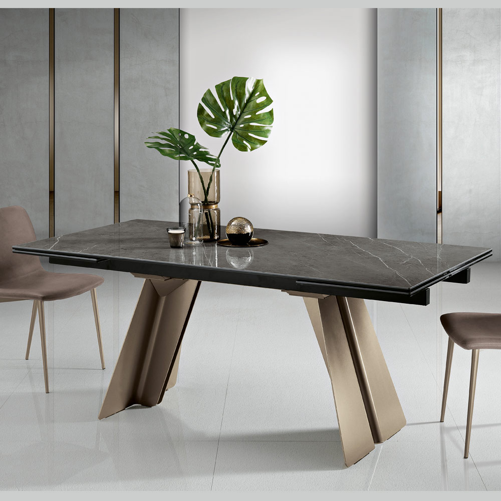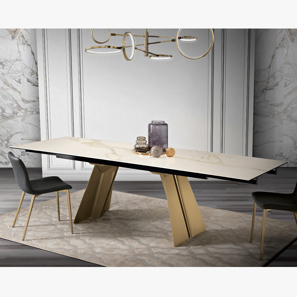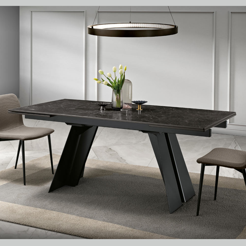 Ideale për ata që kërkojnë një ekuilibër midis elegancës dhe prakticitetit, kjo tryezë e zgjatur përshtatet lehtësisht si në hapësirat intime ashtu edhe në dhomat e ngrënies më të mëdha.