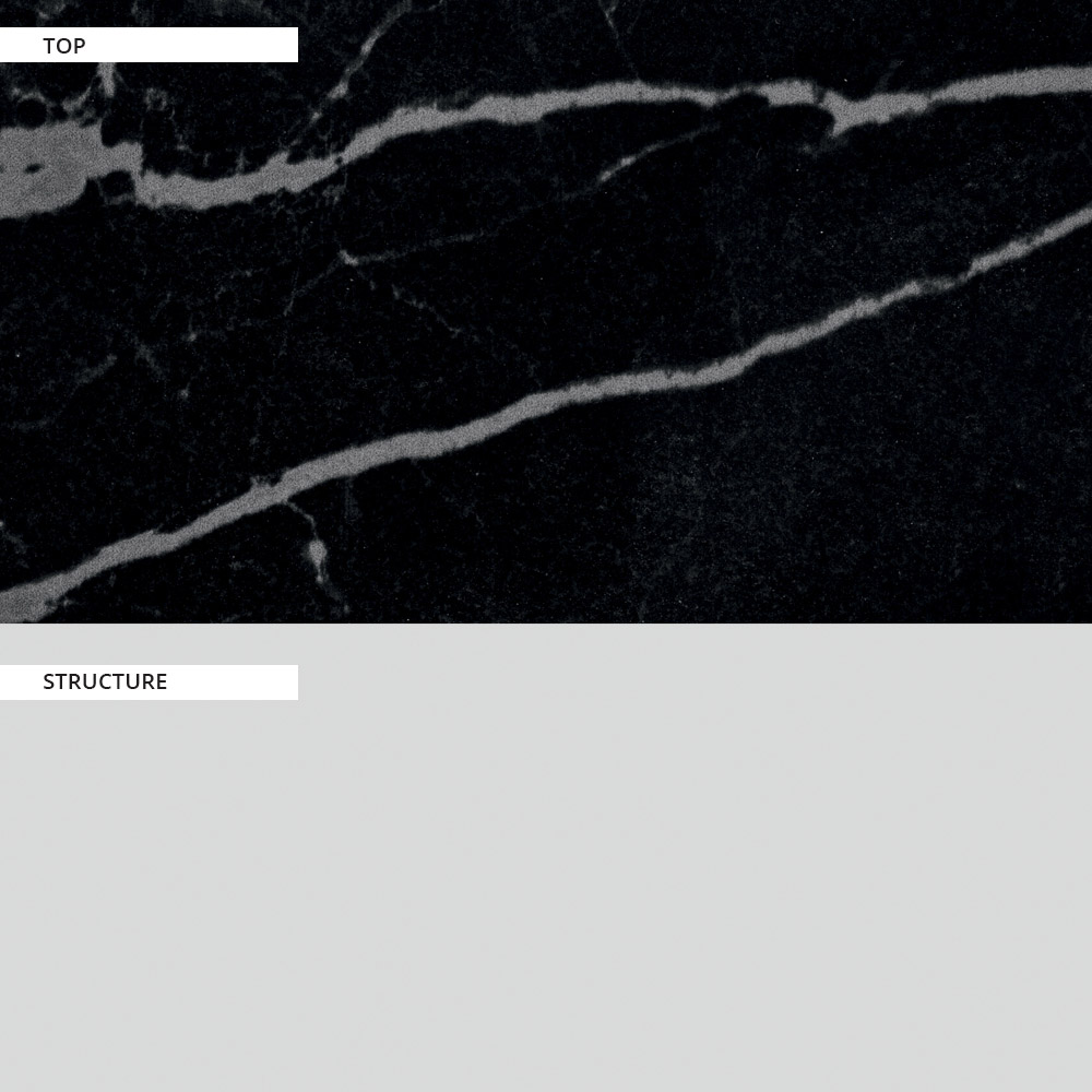 Këmba prej alumini është një detaj që jep një thelb të fortë dhe një dizajn të rafinuar dhe formal ndërsa pjesa e sipërme prej guri prej porcelani e bën këtë tavolinë ngrënie unike dhe me një estetikë elegante , perfekte për të kompletuar çdo situate arredimi me karakter pa vënë në sfond aspektin funksional.