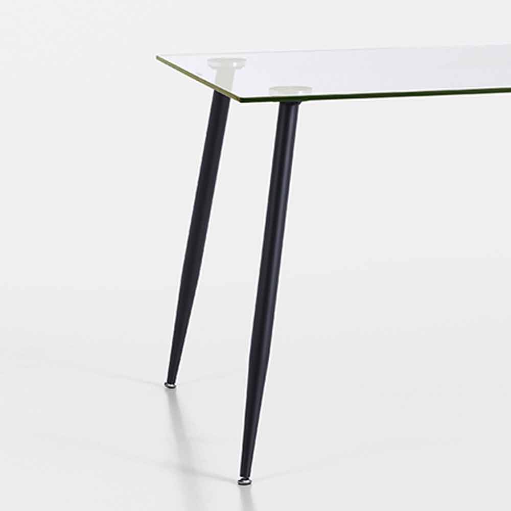 Tavolinë dhomen e ndjenjes me dizajn modern me majë xhami të temperuar dhe bazë metalike të lyer me ngjyrë të zezë mat.