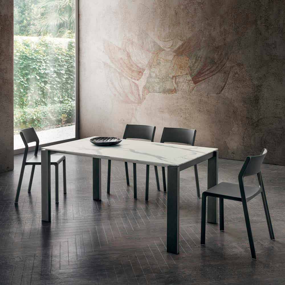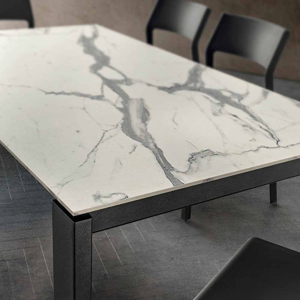 Tavolinë kuzhine hpl me efekt mermeri me strukturë metalike Prodhuar në Itali.