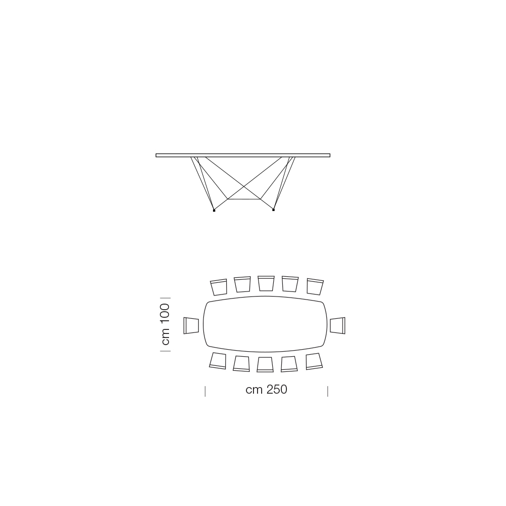 shpirt të rafinuar , i aftë për të kompletuar dhomat e ngrënies ose kuzhinat me një stil modern në mënyrë ekskluzive, duke sjellë me vete një prekje revolucionare. Estetika e tavolinës pasurohet edhe nga forma e veçantë e bazës e cila, duke i ofruar një detaj origjinal pamjes së produktit, i jep jetë një