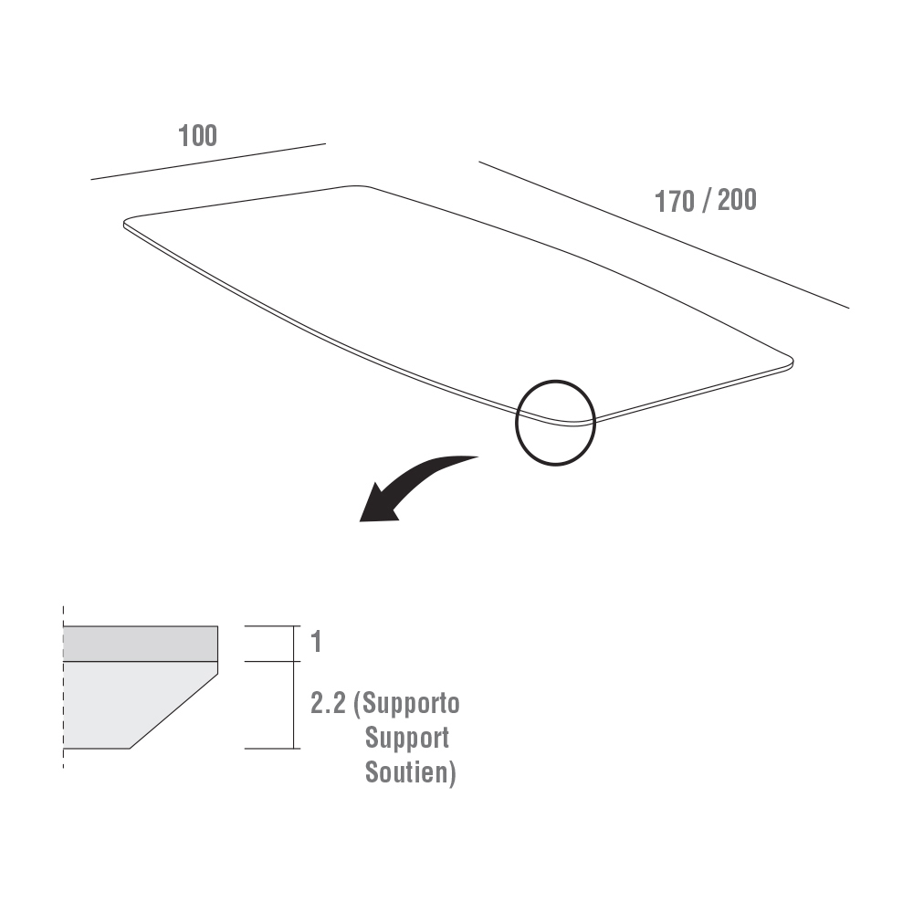 Madhësitë e disponueshme:- E 170 x P 100 x H 76cm;