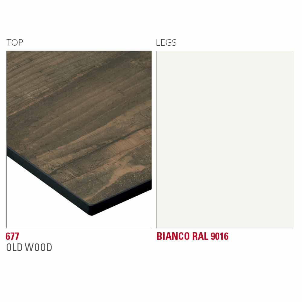 Tavolinë ngrënieje me majë të shtresuar hpl (trashësia 10 mm) e shtresuar në formë fuçie dhe e mbështetur në pjatë mdf dhe