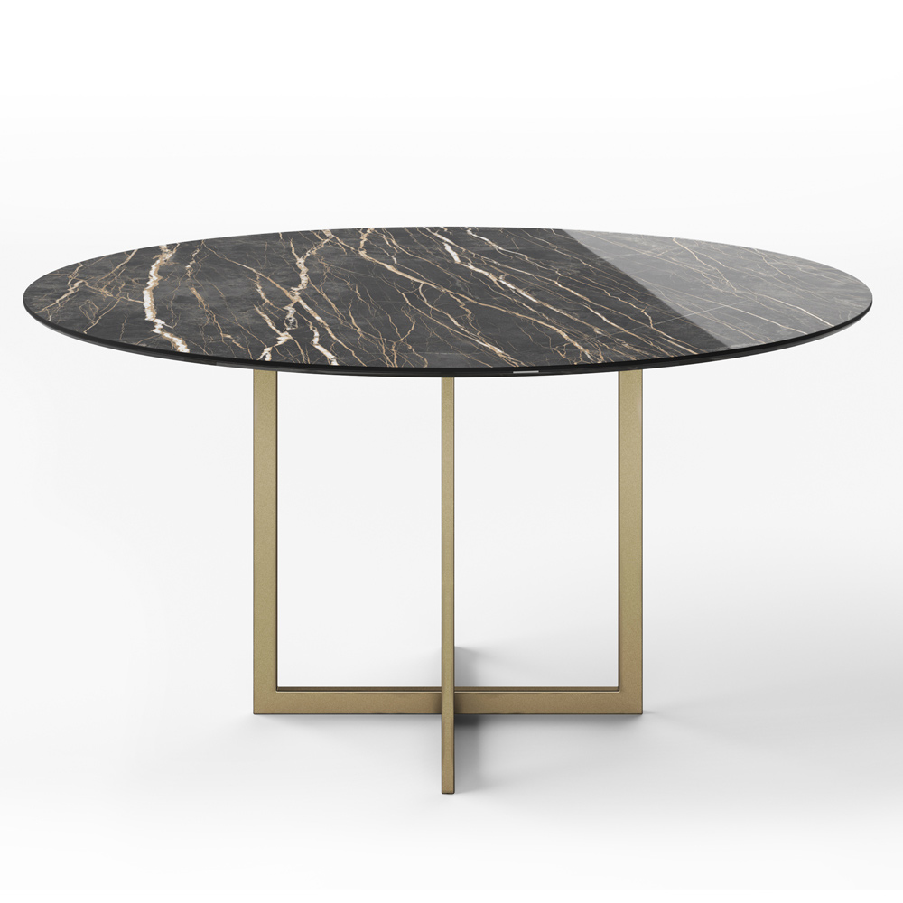 Tavolinë e rrumbullakët e ngrënies prej guri prej porcelani dhe metali Prodhuar në Itali.