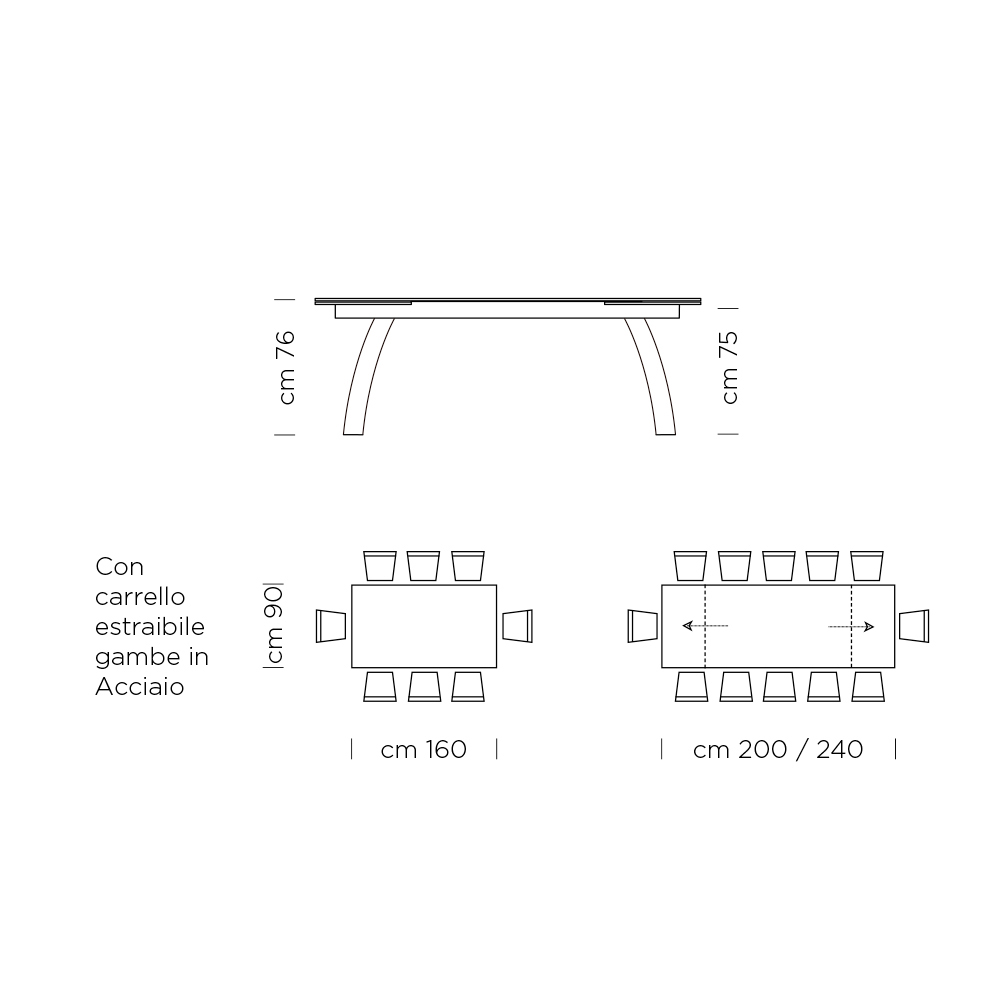 - L 160/240 x D 90 x H 78 cm (8/12 vende);