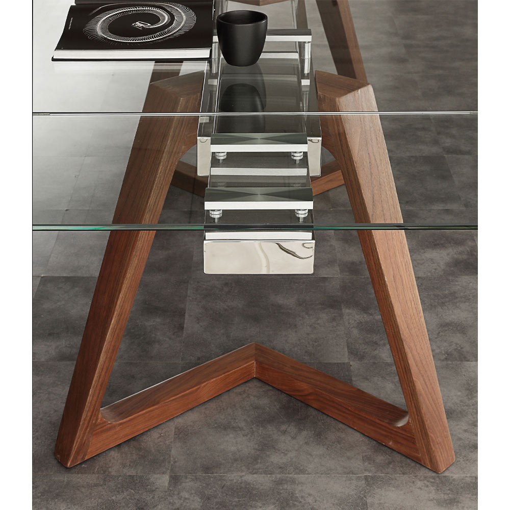 Kjo tryezë e zgjatur është thelbi i elegancës dhe prakticitetit , një vepër e vërtetë arti e dizajnit modern. Transparenca kristalore e majës së saj prej xhami të kalitur lejon një vështrim të bukur të strukturës së saj themelore, një kombinim perfekt i funksionalitetit dhe stilit që do të magjepsë këdo.