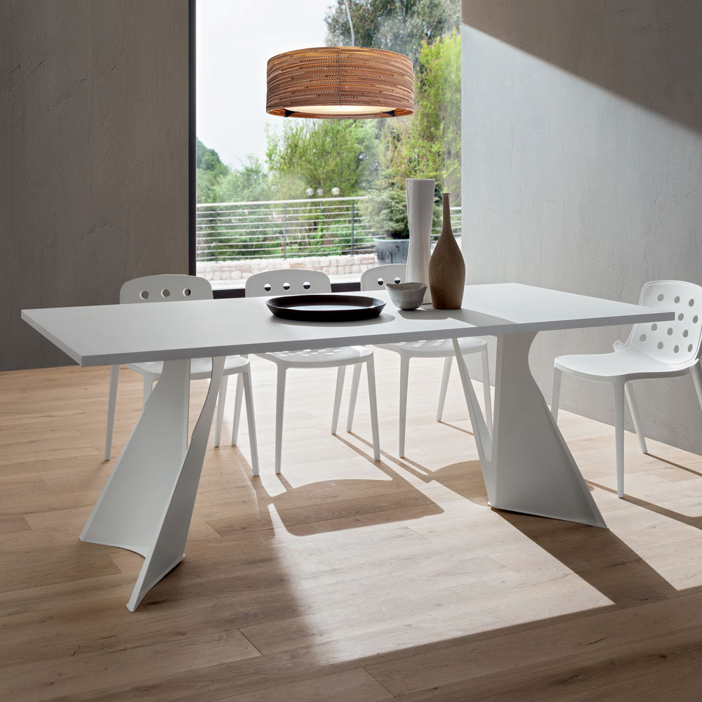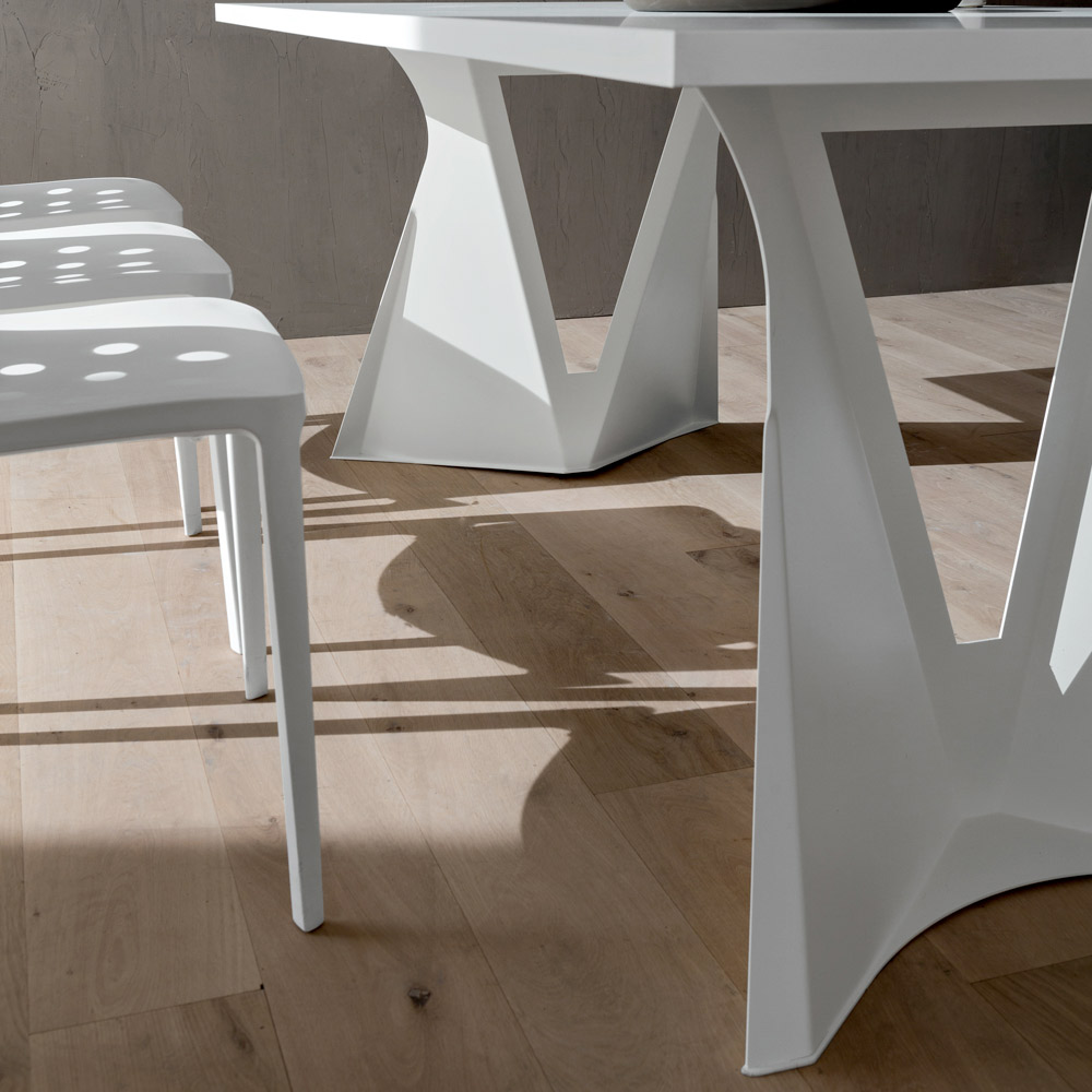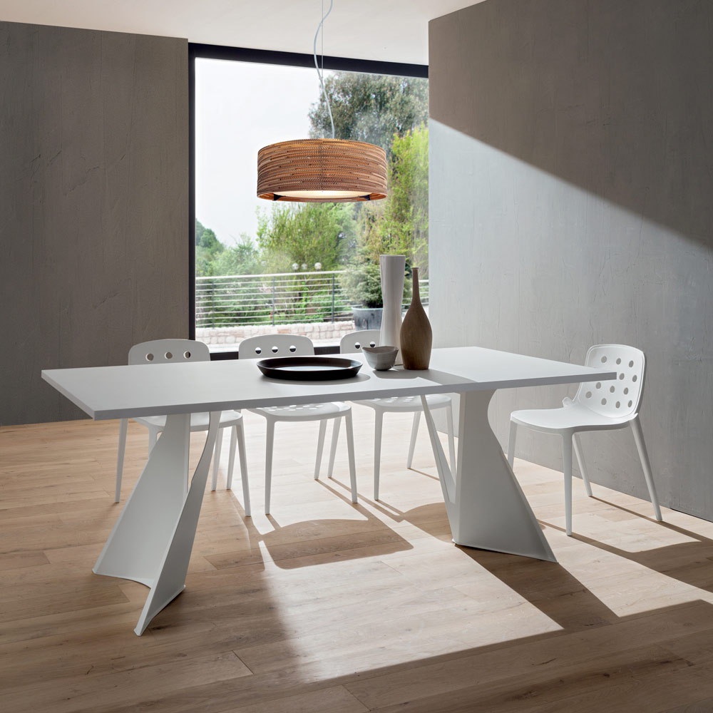 dizajn imponues dhe madhështor . Kjo karakteristikë e pasuron estetikën e saj së bashku me formën e pazakontë të dy këmbëve të cilat i japin tryezës një pamje pothuajse futuriste, duke e bërë atë veçanërisht të përshtatshme për ata që duan të dekorojnë dhe pasurojnë dhomat e tyre me elementë me