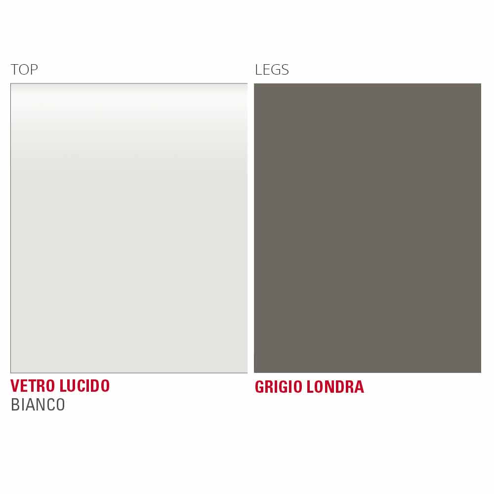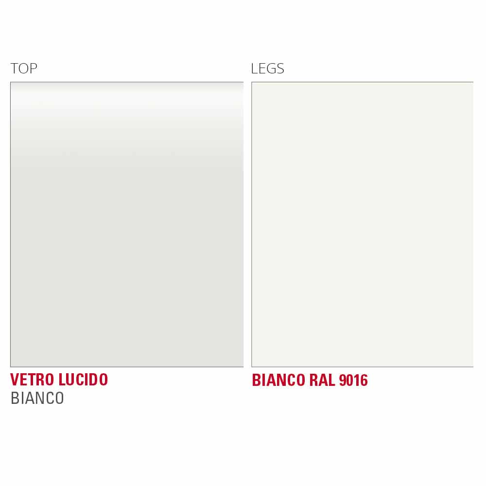 Tavolinë kuzhine me majë xhami të bardhë dhe strukturë metalike Prodhuar në Itali.
