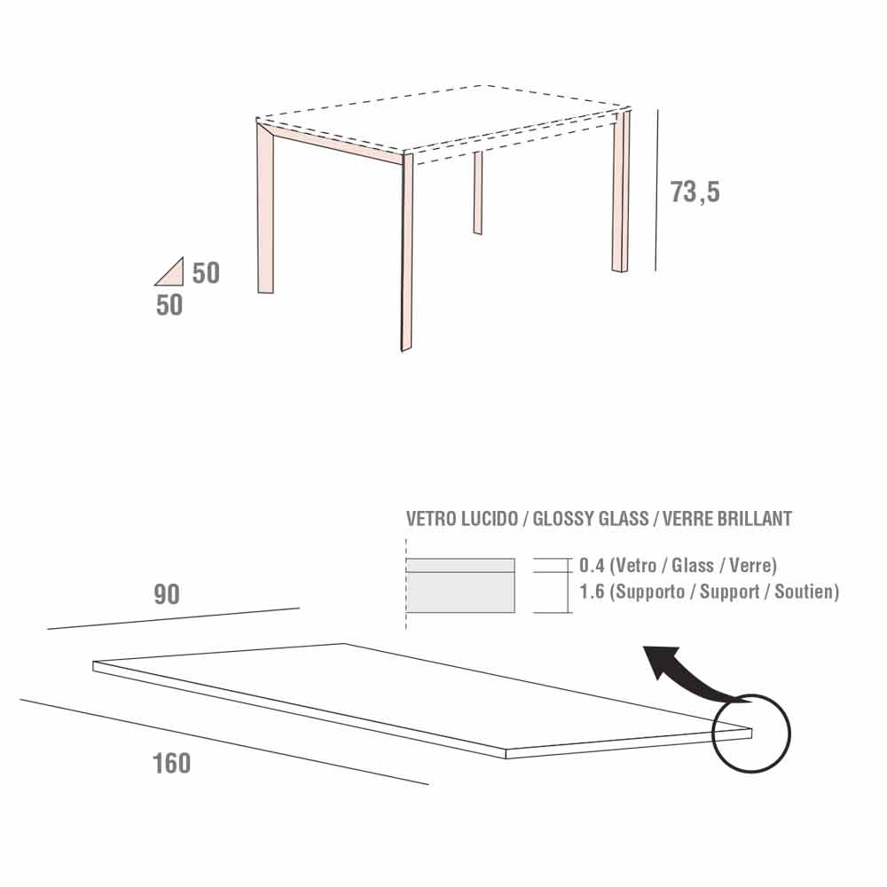 prekja e elegancës që jep xhami dhe përfundimi i veçantë me shkëlqim, të cilat rrisin më tej vlerën e tij. Kjo tavolinë e mrekullueshme ka gjithashtu një anë të fortë funksionale që jepet nga përdorimi i