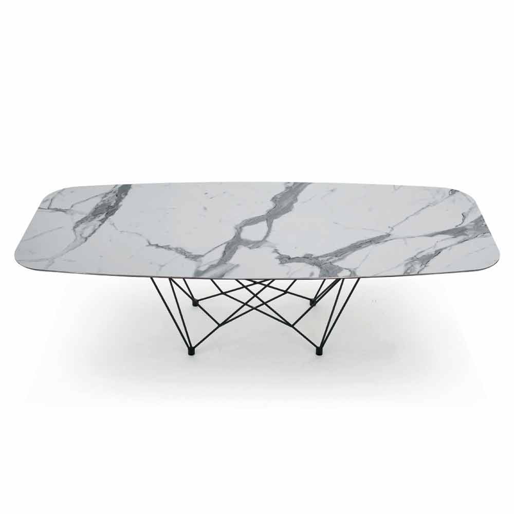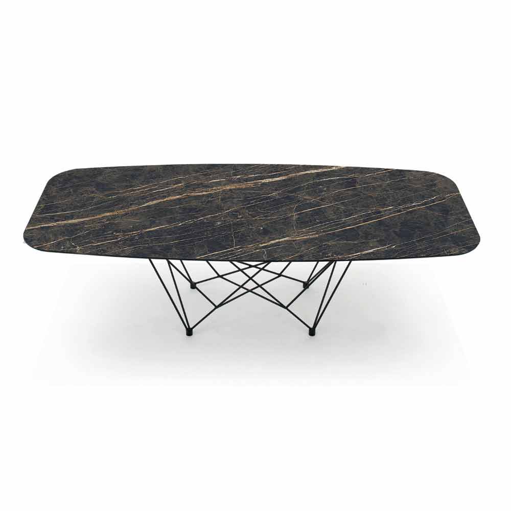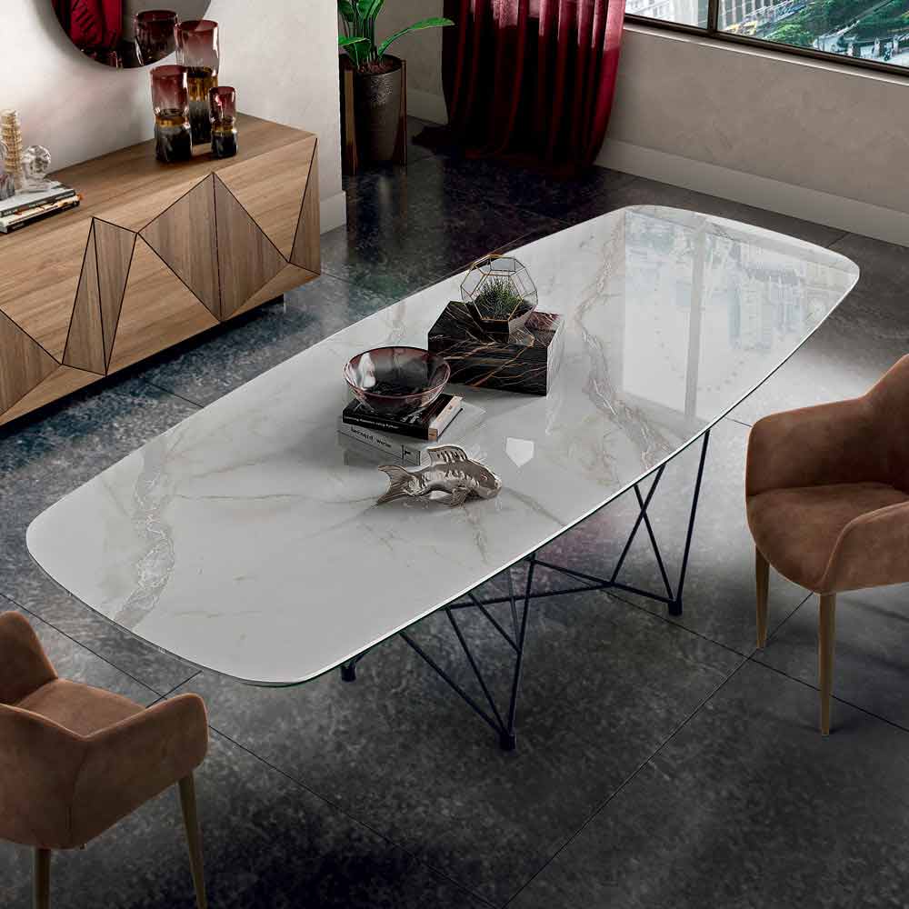 sipërfaqja e mrekullueshme prej qeramike laminam e cila, përveçse e bën tavolinën unike, ofron