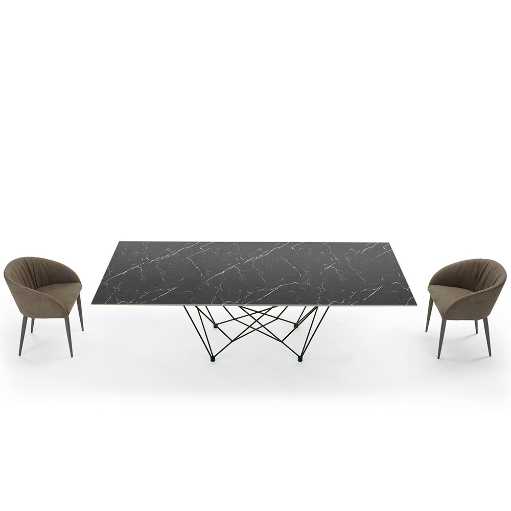 Tavolinë moderne kuzhine me majë Laminam dhe bazë çeliku të zezë prodhuar në Itali.