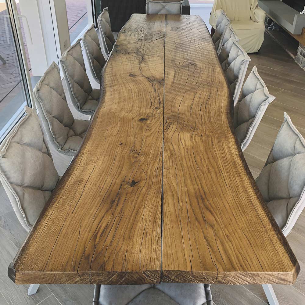 Pjesa e sipërme merret direkt nga trungu. Dy gjysma janë marrë nga trungjet laike të lisit dhe bashkohen për të krijuar pjesë unike me gjerësi të ndryshueshme nga 90 në 100 cm. Lëvorja e pemës ruhet në natyralitetin e saj duke krijuar një efekt të jashtëzakonshëm.