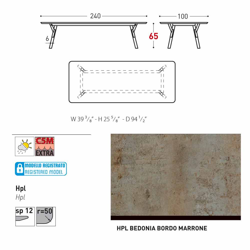 Karakteristikat teknike të HPL : Laminat me presion të lartë. Ato janë bërë nga disa shtresa letre (70%) të ngopura me rrëshirë termosetting (30%) dhe kompaktësohen për rreth 45-50 minuta përmes veprimit të kombinuar të nxehtësisë (në rreth 150 gradë) dhe presionit të lartë (më të madh se 7 MPa / Megapascal për metër katror.) Rezultati është një produkt i qëndrueshëm, jo reaktiv, jo poroz dhe me densitet të lartë. Ka karakteristika fizike dhe kimike me forcë të lartë mekanike (ekskursion të kontrolluar të temperaturës + 80 / -40 gradë, për më pak se 30 sekonda në temperatura ekstreme). Ajo reziston ndaj ekspozimit të dritës dhe ndryshimeve të temperaturës, madje edhe në mjedise detare.
