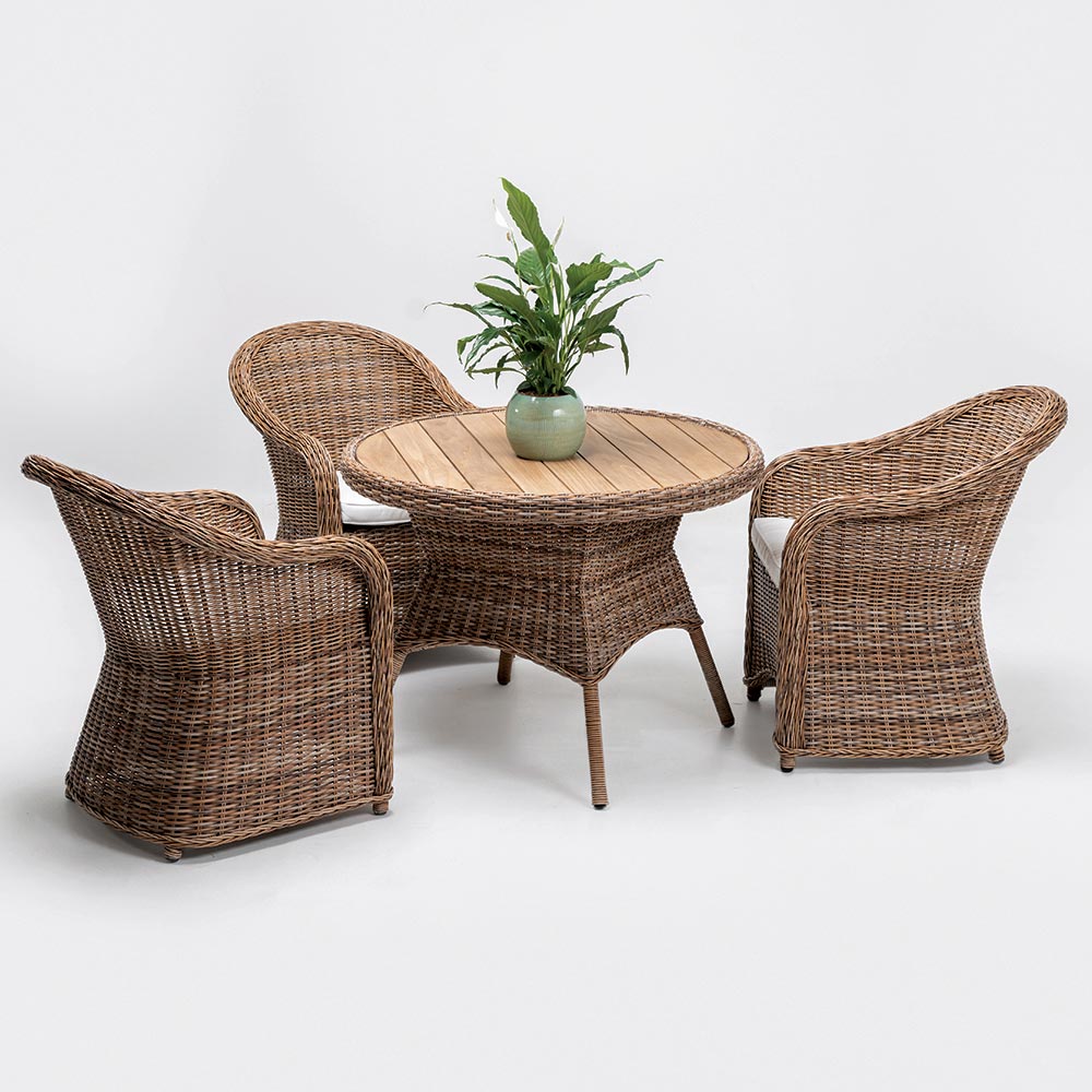 Kjo tavolinë kopshti është një shtesë simpatike për çdo hapësirë të jashtme. Korniza e saj e endur prej poli-ratani është një dëshmi e dizajnit natyror, duke ofruar qëndrueshmëri dhe një bukuri që rritet me kalimin e kohës. Sipërfaqja e tavolinës, e bërë nga dërrasa natyrale të drurit tik , ju fton të ndani momente relaksi dhe gëzimi në natyrë.
