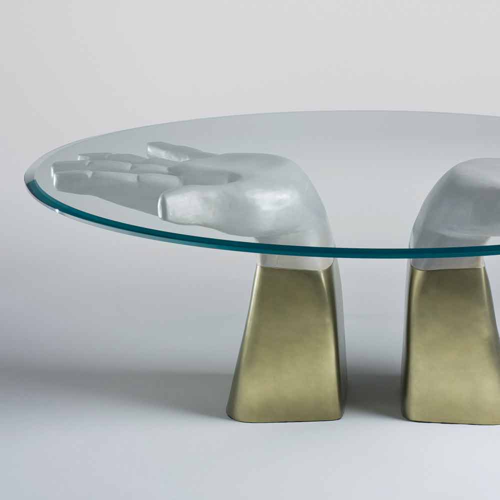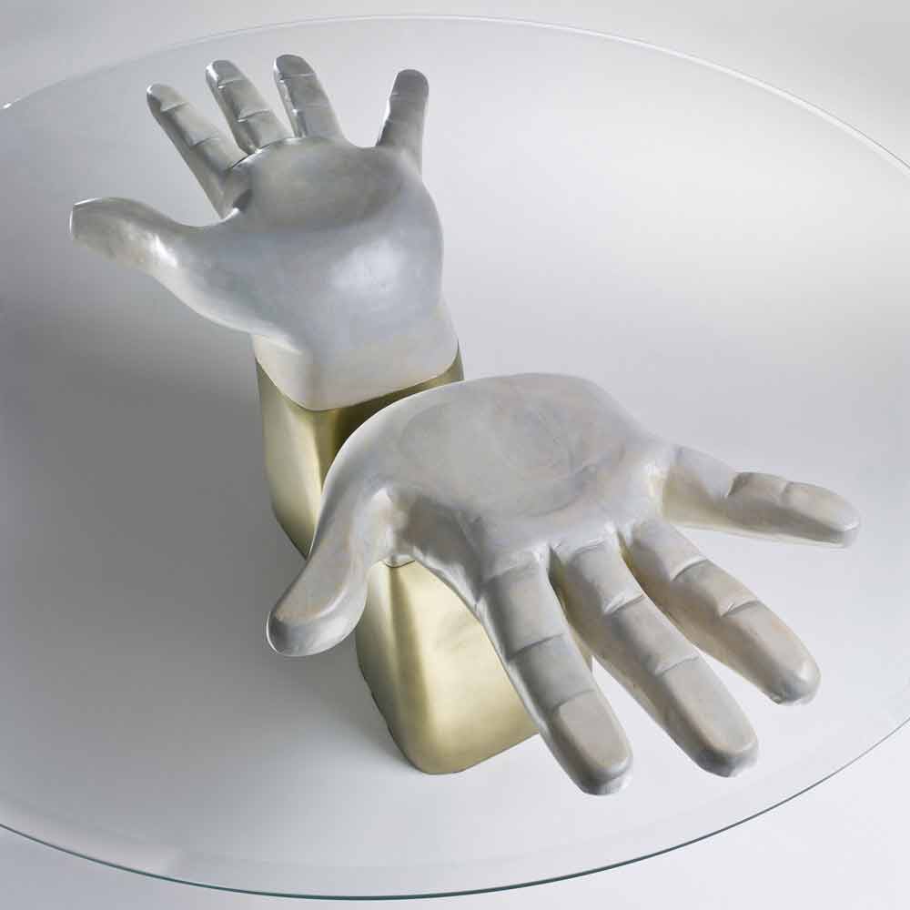 Tavolinë ngrënieje prej druri me majë qelqi, e bërë në Itali, Bartolo Luksoze, kreativitet dhe elegancë mblidhen në tryezën Bartolo , një pjesë e mobiljeve të dizajnuara për të dashuruarit e dizajnit Made in Italy. Struktura dhe zbukurimet përmirësojnë njëra-tjetrën: maja e rrumbullakët në të vërtetë mbështetet nga pëllëmbët e dy duarve, gjymtyrët e mëdha prej druri të gdhendura me dorë me prangat e arta që kujtojnë sugjerimet e popit. Pjesa e sipërme është bërë nga xhami bevelled. Një skulpturë e vërtetë për zonën e banimit. Tavolinë ngrënieje e gdhendur me bazë të përbërë nga 2 duar të gdhendura prej druri, majë qelqi prej 15 mm. Në dispozicion në dy përfundime të ndryshme: zgjidhni atë të dëshiruar nga menyja drop-down.