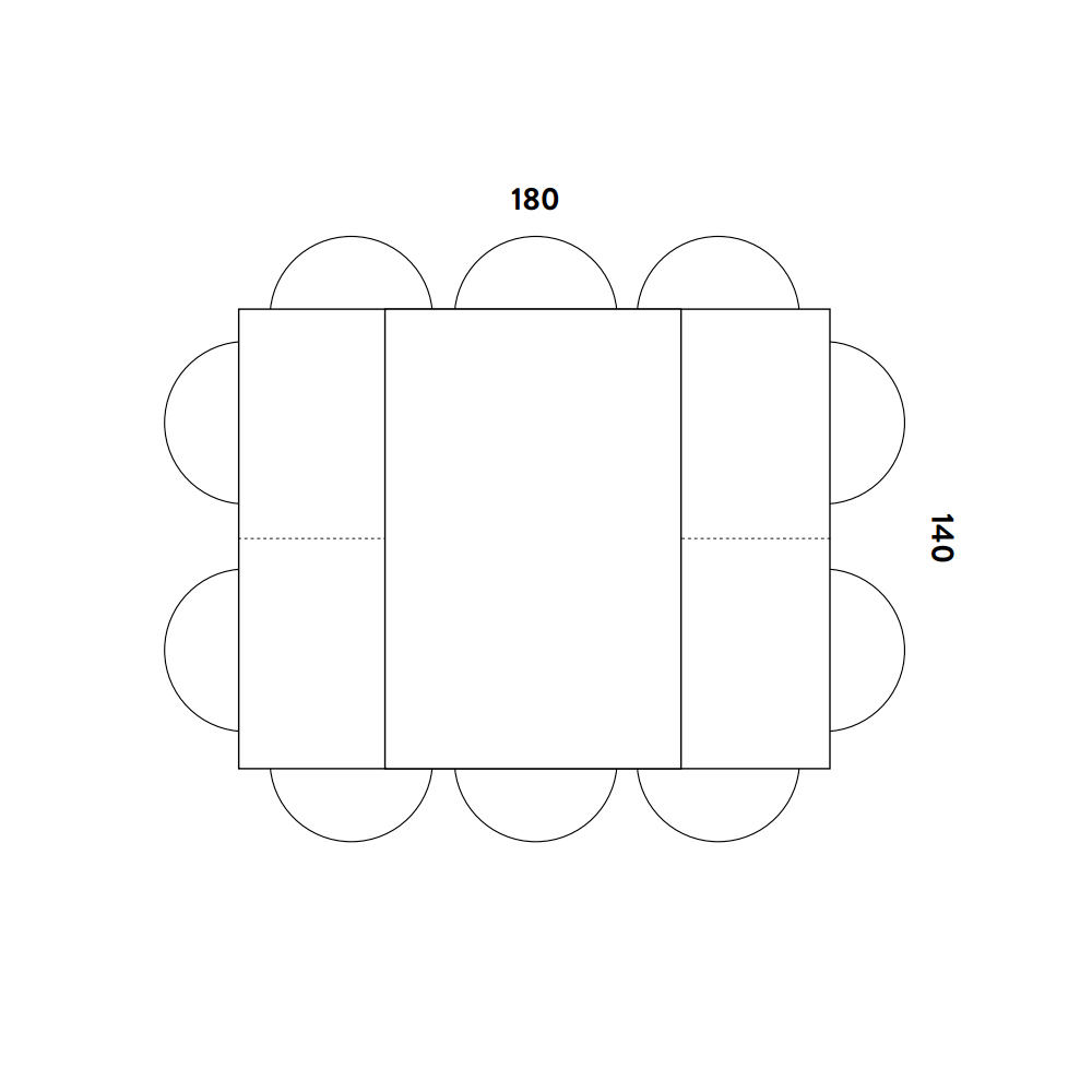 e hapur: gjatësia: 180 cm x thellësia: 140 cm x lartësia: 76 cm