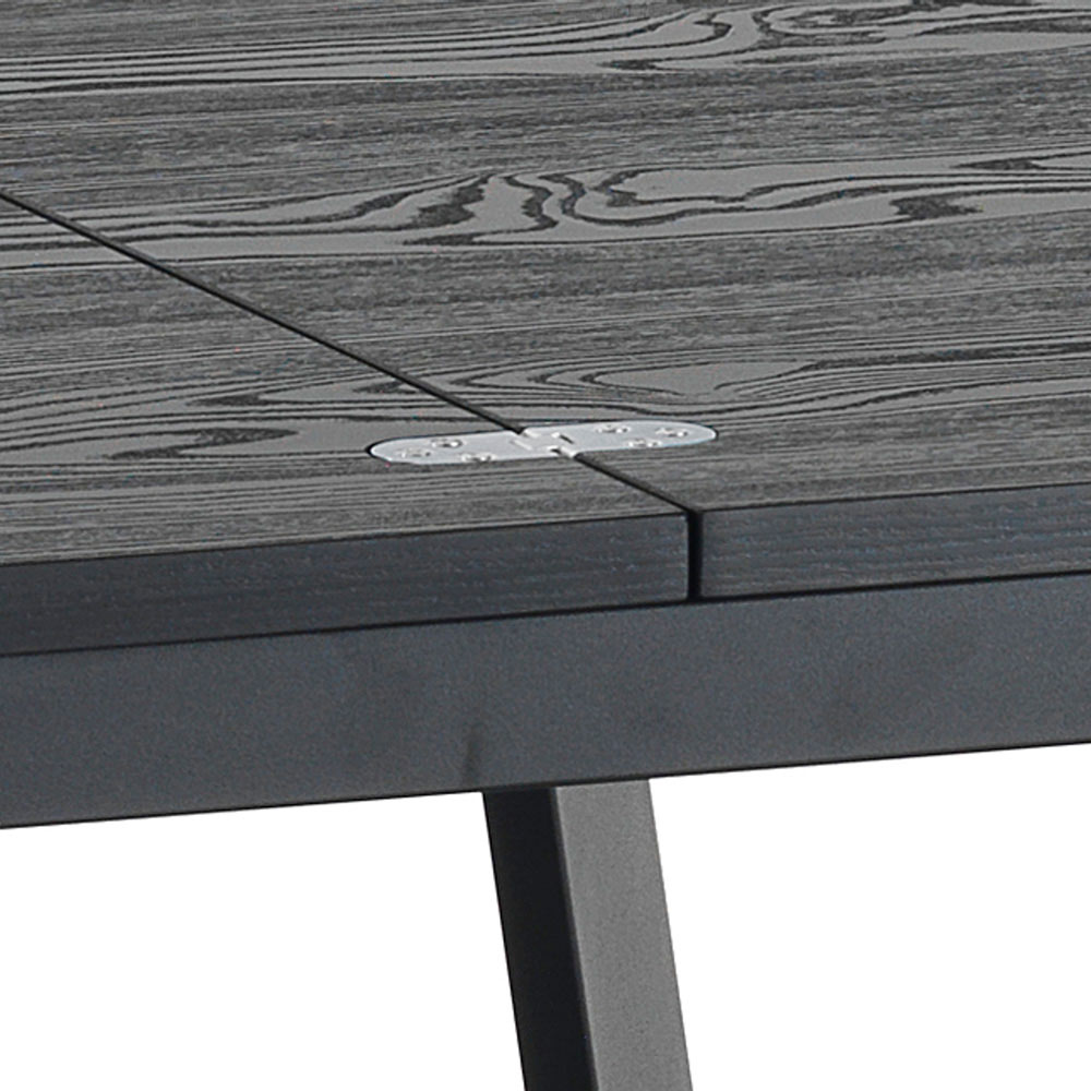 sipër melamine me finiturë druri të zi, këmbë prej çeliku të lyer me ngjyrë të zezë mat