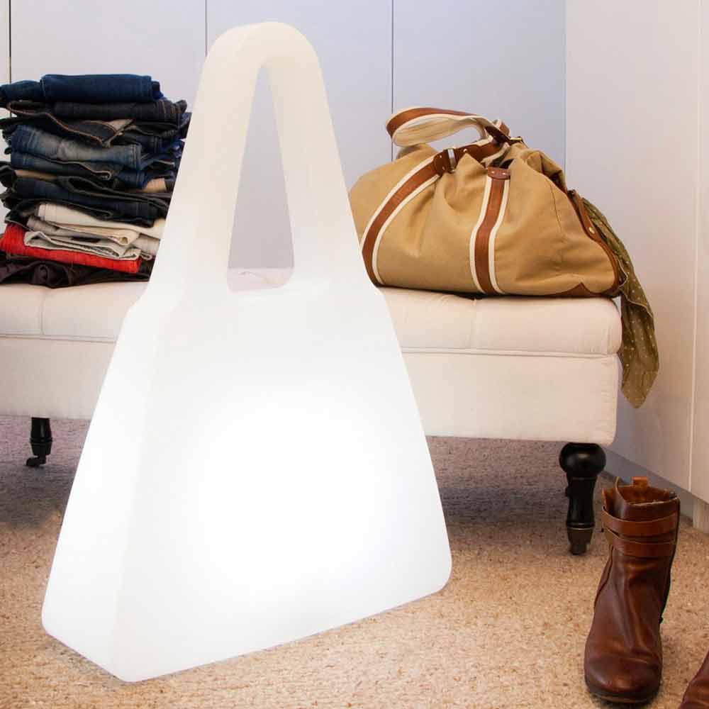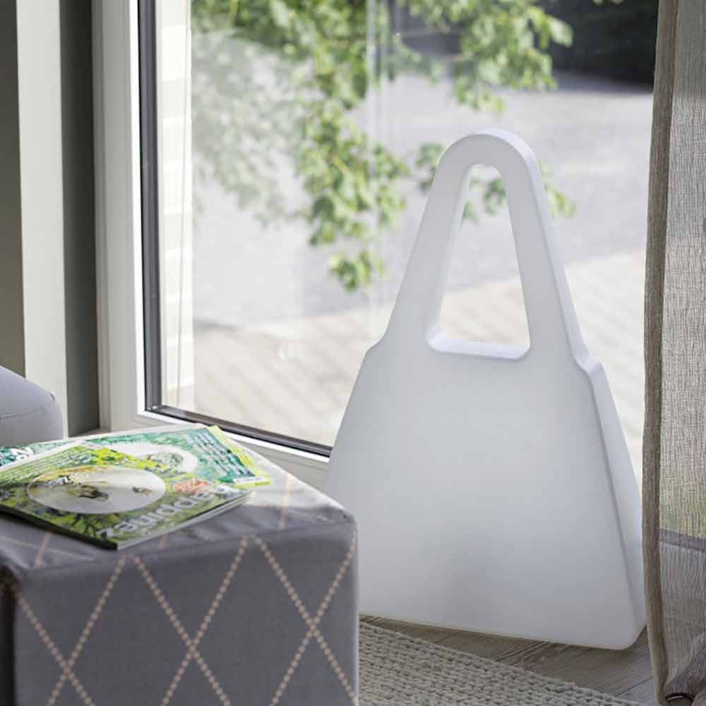 Llambë dyshemeje ose tavoline në formë qese, dizajn modern në polietileni me lidhje LED, diellore ose E27.