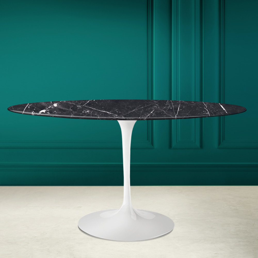 Tavolinë ngrënie tërësisht e prodhuar në Itali me majë qeramike ovale marquinia, efekt mermeri mat marquinia dhe bazë alumini të lëmuar. Kjo tavolinë është elementi i përsosur për t'i dhënë një prekje origjinale çdo dhome ndenjeje dhe kuzhine falë formës ovale dhe qeramikës Marquinia. Forma ovale përdoret gjithnjë e më shumë për tavolinat e ngrënies pasi mundëson prakticitet dhe funksionalitet të madh dhe jep një prekje inovative falë linjës së re dhe të rafinuar. Qeramika Marquinia karakterizohet nga venat e gjalla dhe komplekse që janë të përshtatshme për të kompletuar stilin e çdo dhome, nga moderne në atë bashkëkohore.