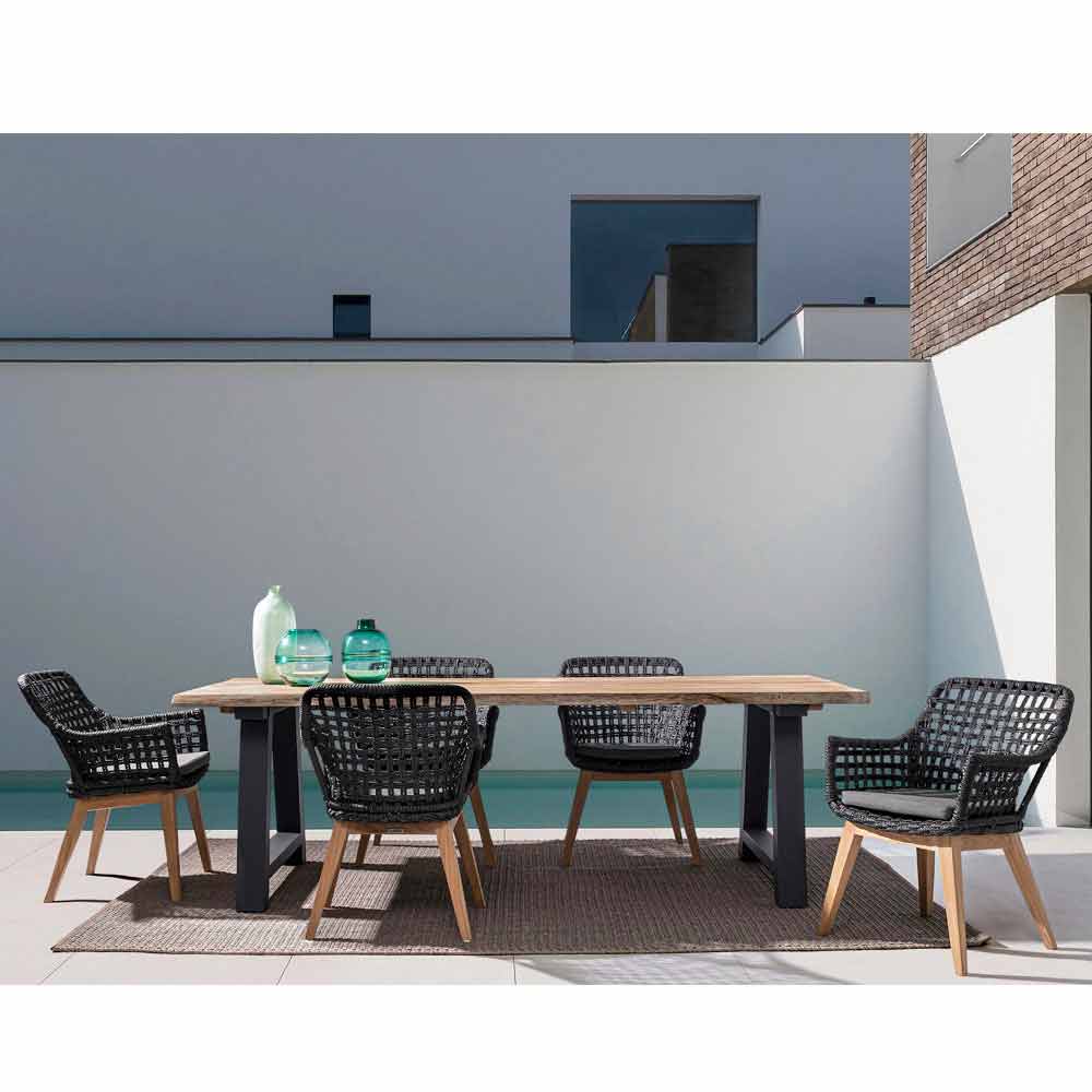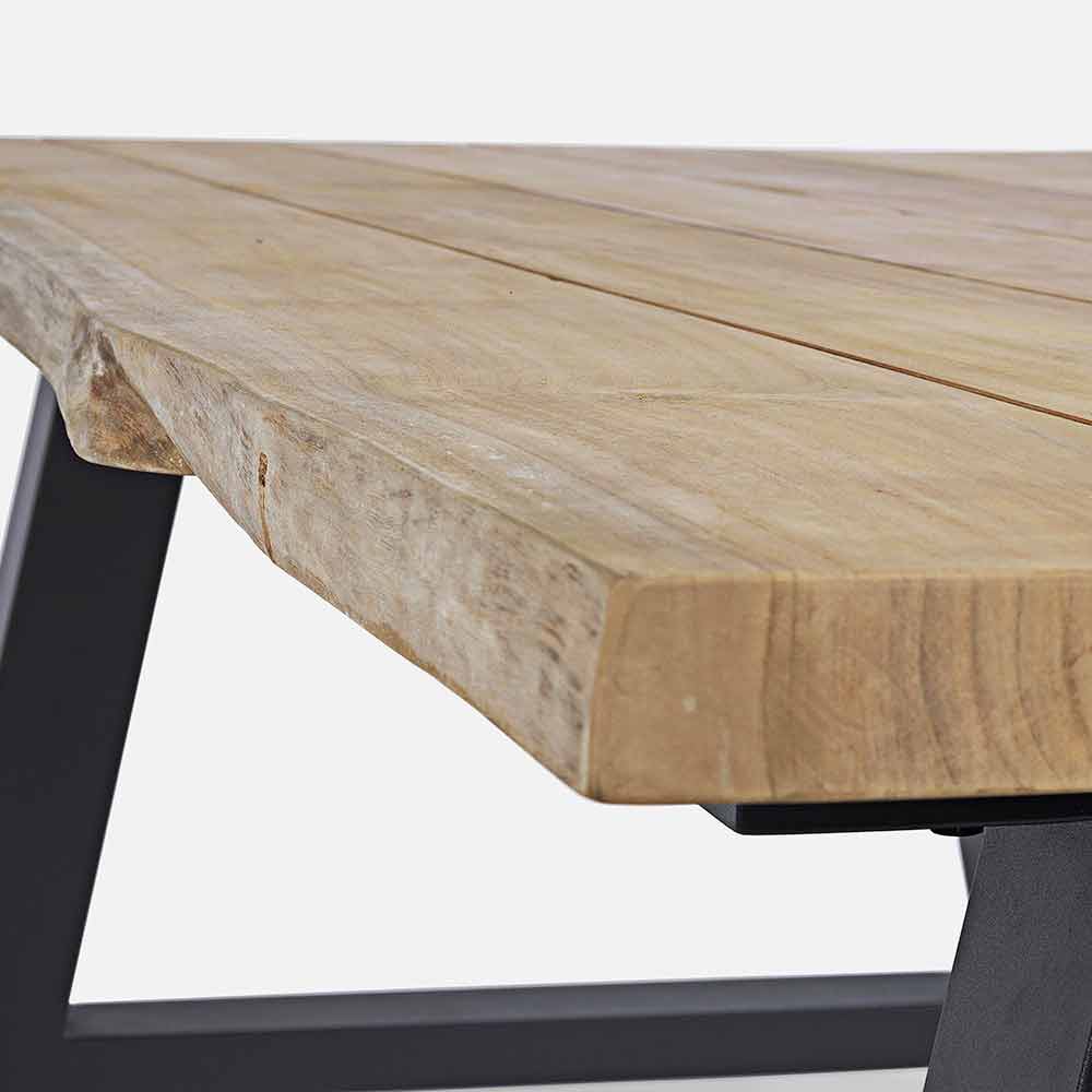 Pjesa e sipërme e drurit të dru tik (pjesët origjinale të trungut) - svlk (druri i certifikuar nga pyjet e qëndrueshëm). përfundim natyral, këmbë alumini të veshura me pluhur (poliester). Vida çeliku të galvanizuar. Këmbë të rregullueshme.