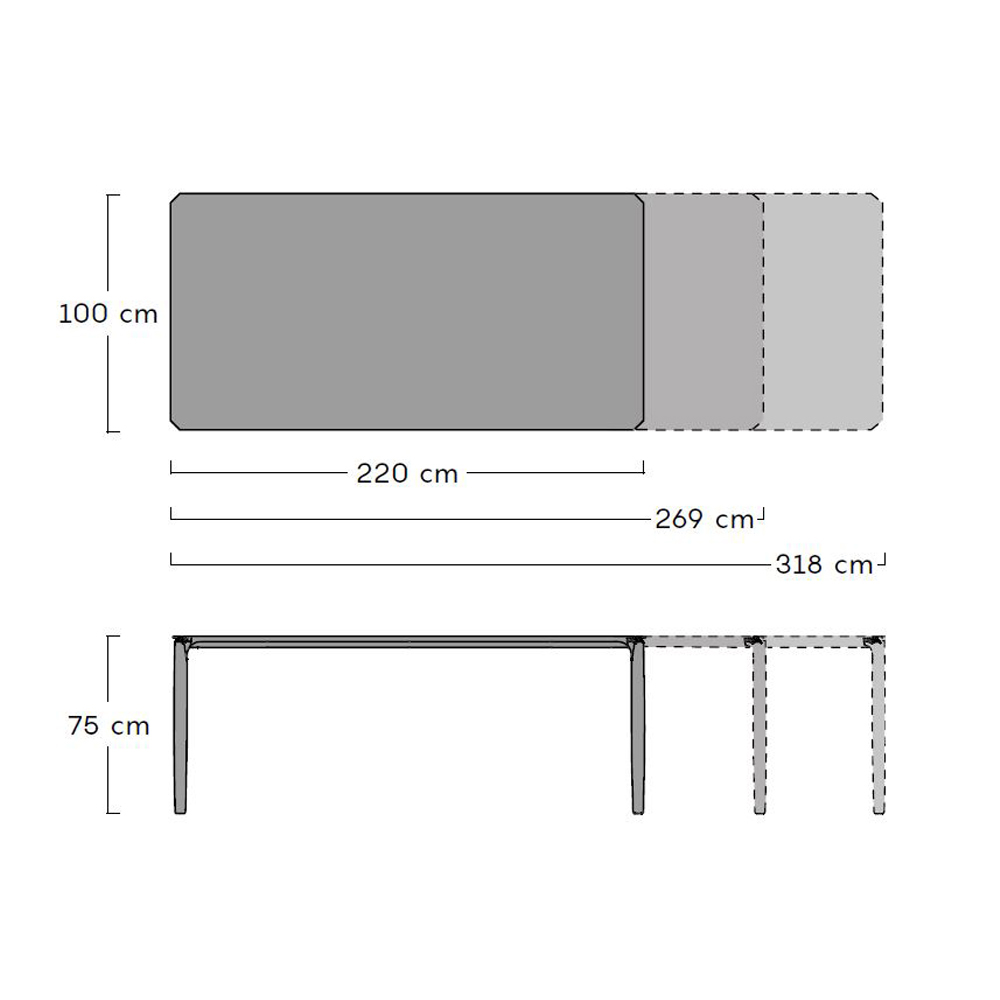 Tavolinë ngrënieje e zgjatur deri në 318 cm dizajn në natyrë në majë alumini dhe gresi në përfundime të ndryshme, të prodhuara në Itali.