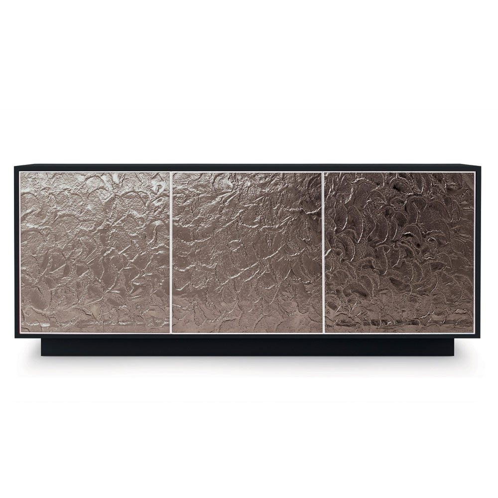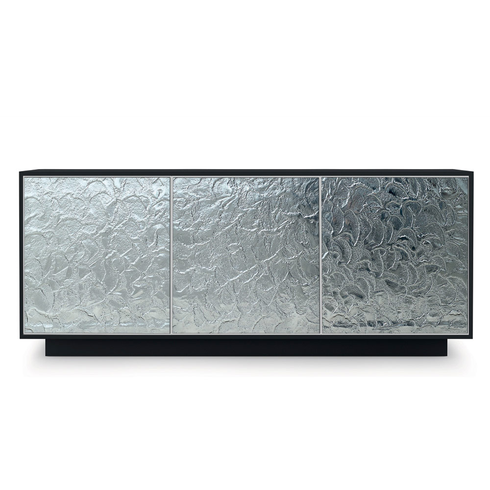 Bofoni i dhomës së ndenjes tërësisht i prodhuar në Itali me strukturë bazamenti dhe bazëne dru te zi mat me llak , 2 ose 3 dyer me profil alumini dhe ballina xhami te punuar te pajisura me sistem hapjeje push&pull dhe rafte te brendshem ne xham tempered transparent (trashesia 6 mm, ngarkesa maksimale 20 kg). Estetika e saj lind nga dëshira për të kombinuar funksionalitetin dhe elegancën për një rezultat me një personalitet modern dhe një ndikim të fortë skenografik , ideal për ata që duan një stil arredimi të rafinuar dhe të fundit . Kombinimi perfekt i elegancës së përjetshme të xhamit dhe punimi i tij origjinal me prekjen imponuese të drurit jep një plotësim me një dizajn luksoz të aftë për të karakterizuar çdo dhomë në shtëpi me një prekje stili ekskluziv .