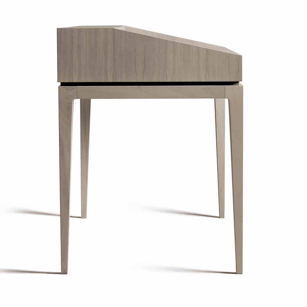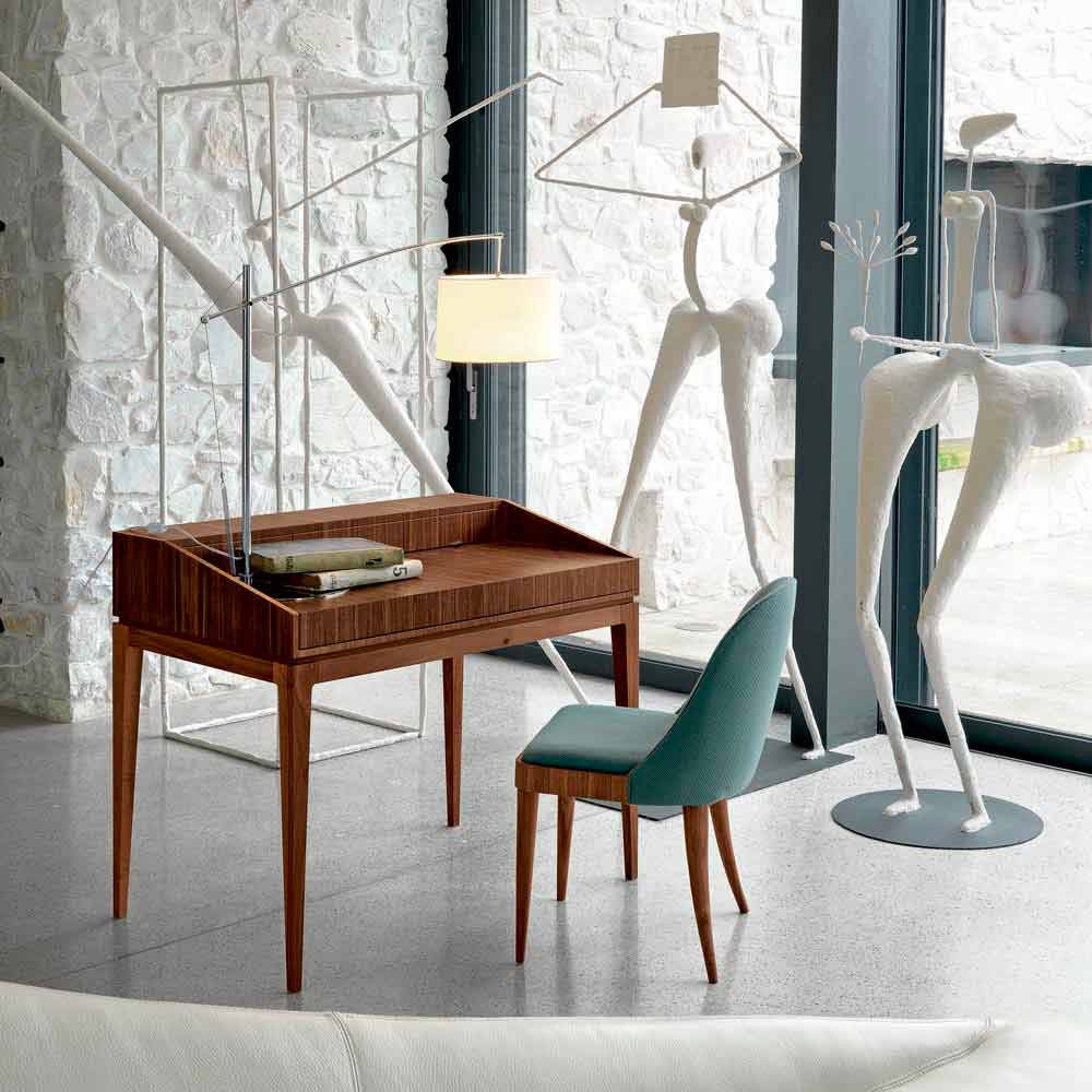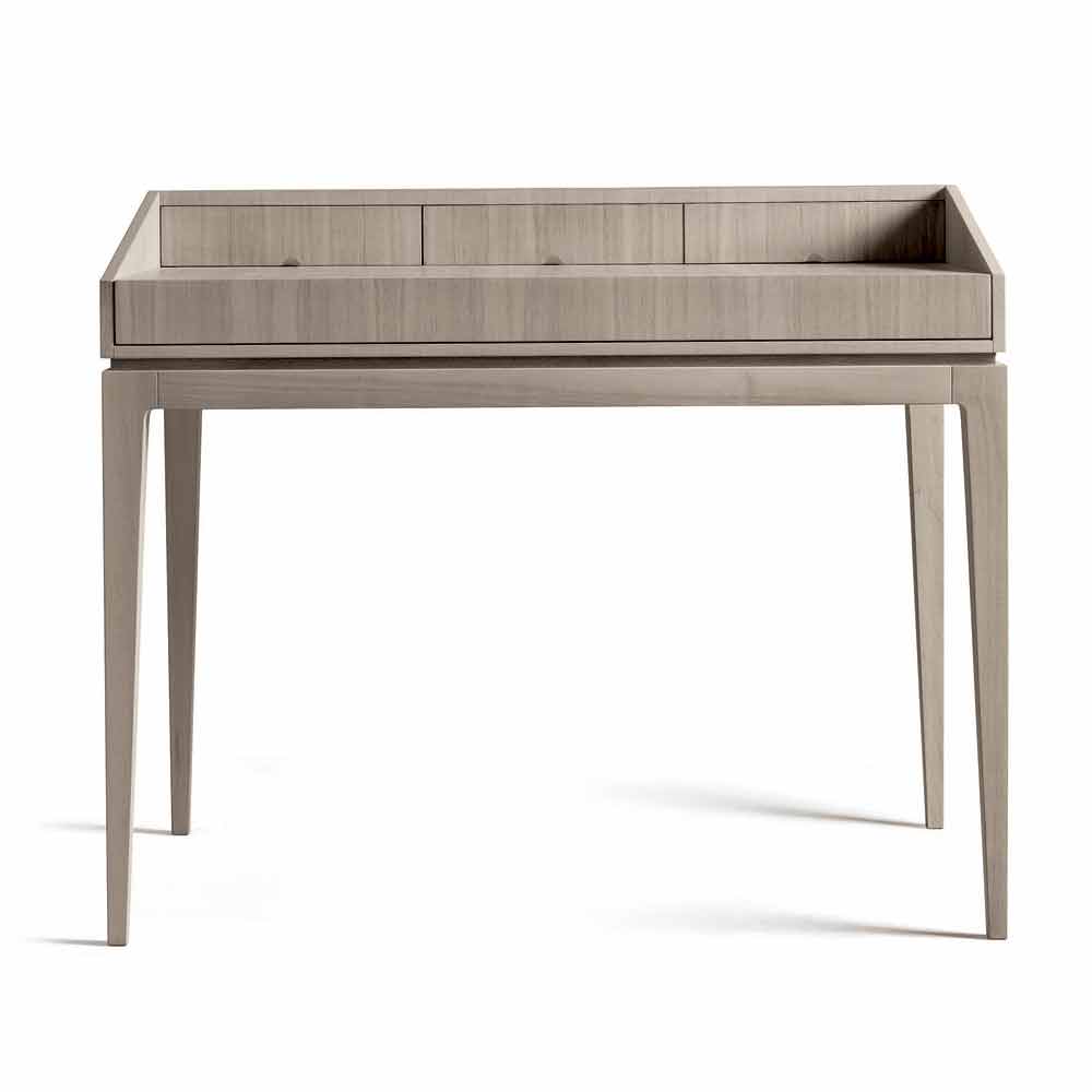 Tavolinë shkrimi moderne në dru arre, l.105xp.65cm, Acario Tavolinë me majë në tabelë me rimeso rimeso. Struktura dhe këmbët në arra të ngurta. Përfshirë ndarje nën dysheme dhe 3 sirtarë.
