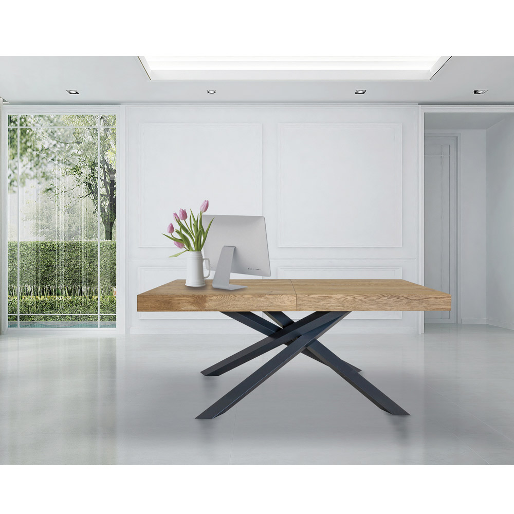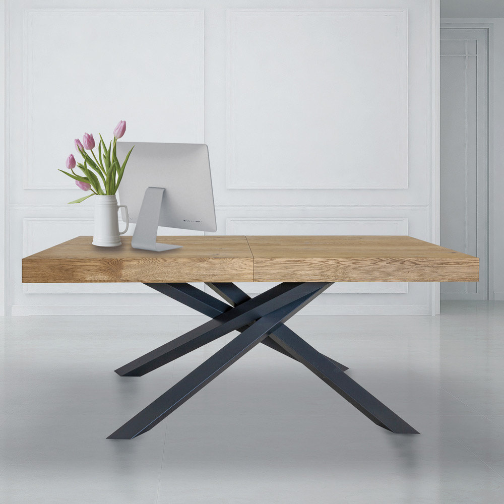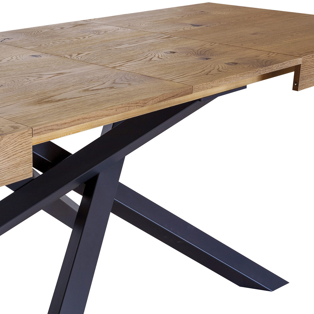 Tavolinë ndenjeje e zgjatur prej druri të ngurtë. Baza është në metal vetëm në fundngjyrë të zezë . Produkti është bërë tërësisht në Toskanë me përdorimin e materialeve të cilësisë së lartë dhe vjen me 2 zgjatime prej 50 cm secila, të vendosura brenda pjesës së sipërme, të cilat e bëjnë atë të gjithanshëm.