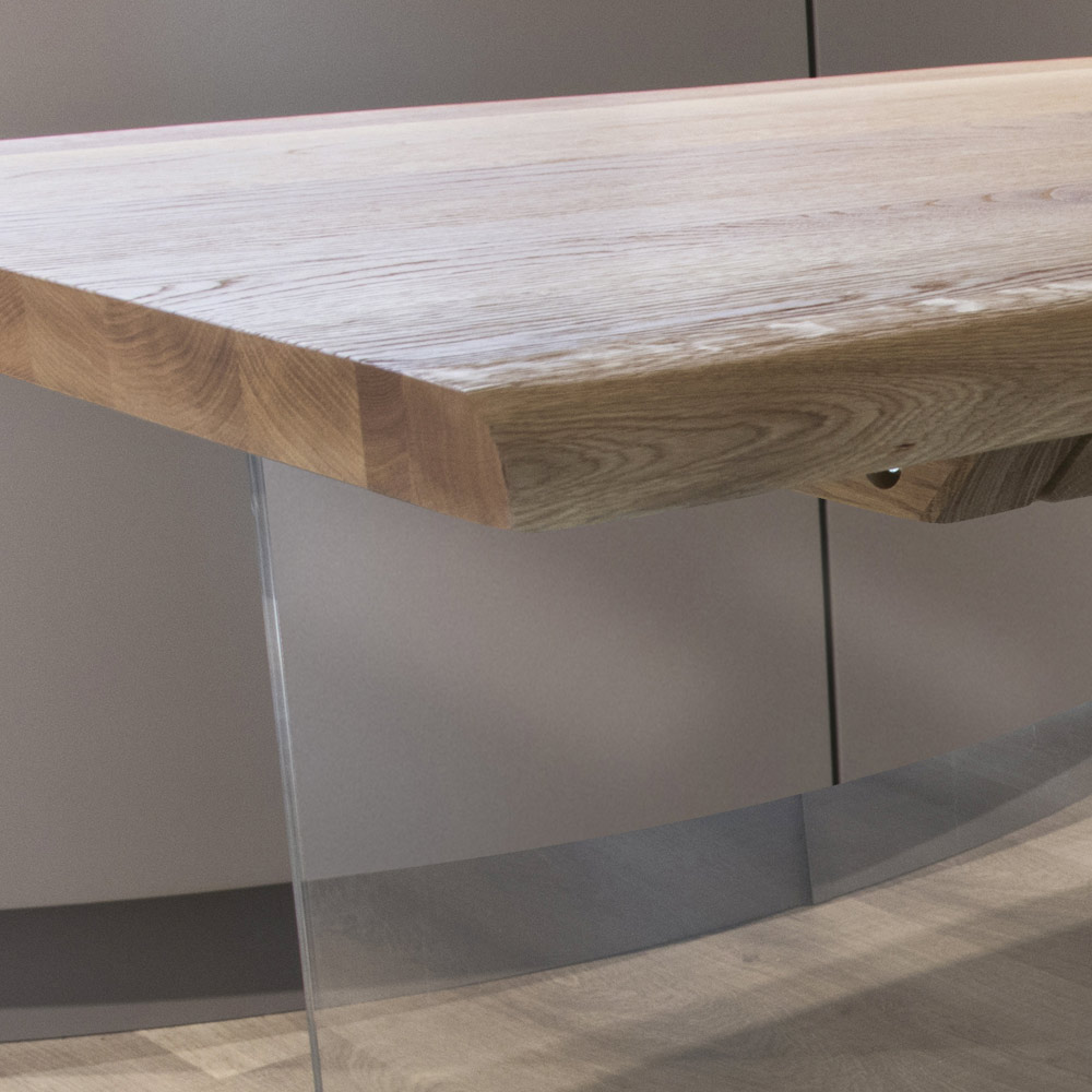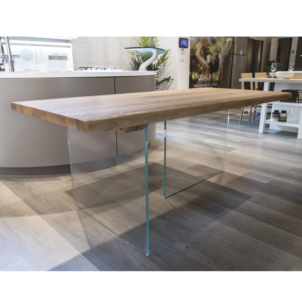 Tavolinë prej druri e veshur me bazë lisi dhe kristali me nyje Prodhuar në Itali.