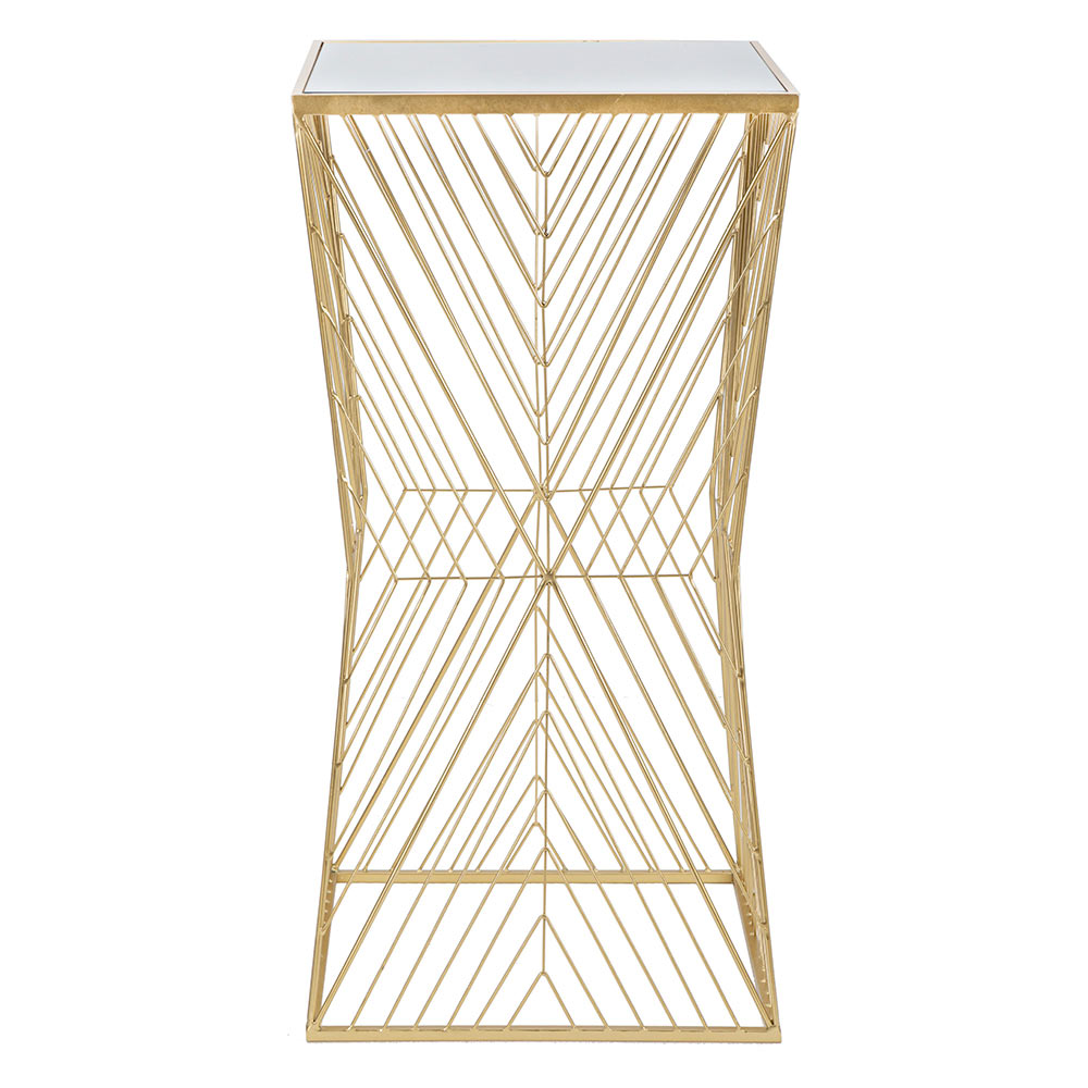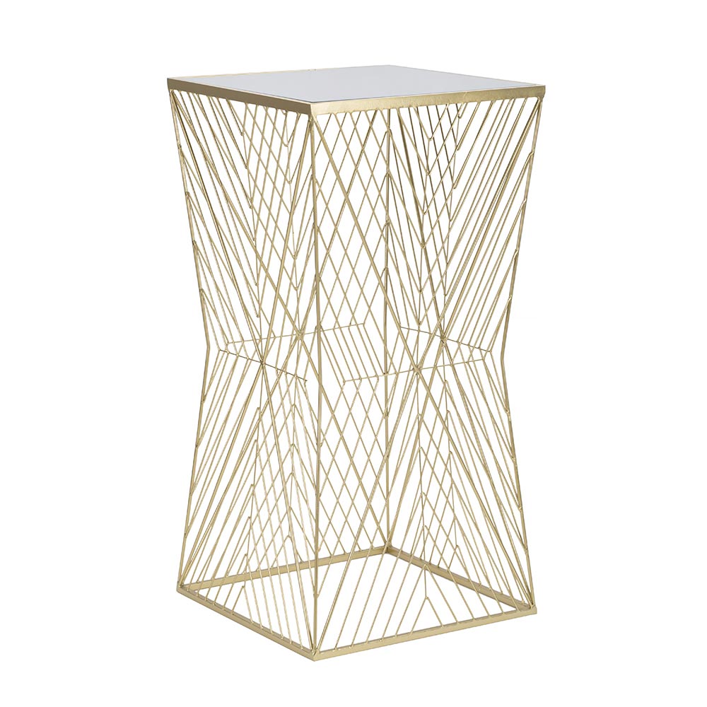 Pjesa e sipërme e qelqit, e vendosur në një kornizë të artë, është praktike dhe e lehtë për t'u pastruar, duke ofruar një sipërfaqe ideale për objektet tuaja të preferuara dekorative, nga një llambë dizajnere deri te një bimë e harlisur. Struktura ofron një prekje shkëlqimi që mund të gjallërojë çdo dhomë, nga dhoma e ndenjes në dhomën e gjumit, pa shkuar shumë larg në lulëzim.
