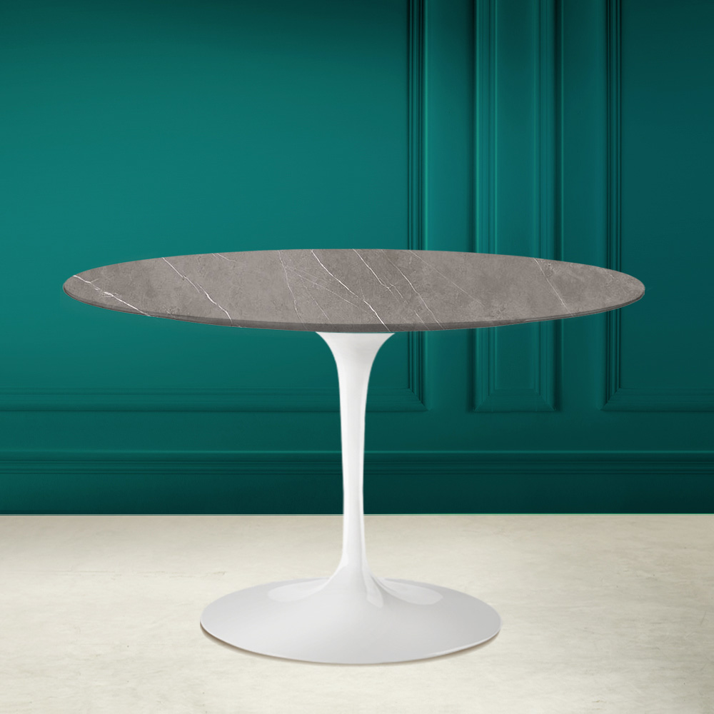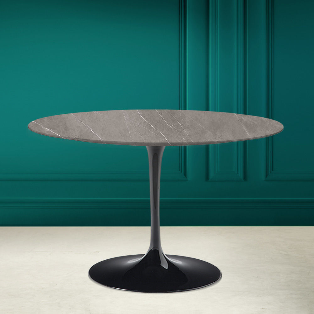 Tavolinë ngrënieje me majë të rrumbullakët në qeramikë guri gri, efekt guri gri mat dhe bazament alumini të lëmuar tërësisht Prodhuar në Itali.Përfundimet lineare dhe të rafinuara krijojnë një element që është i lehtë për t'u futur në çdo stil arredimi të çdo dhome ndenjeje dhe kuzhine. Bashkimi midis qeramikës së gurit gri dhe aluminit të lëmuar e bën këtë tryezë të përshtatshme për të gjitha situatat dhe rastet e përdorimit, duke krijuar një dhomë unike dhe mikpritëse. Fjalët kyçe për të përshkruar këtë produkt janë prakticiteti dhe funksionaliteti pa harruar elegancën e dhënë nga ngjyra dhe grafika e veçantë e qeramikës gri të gurit.