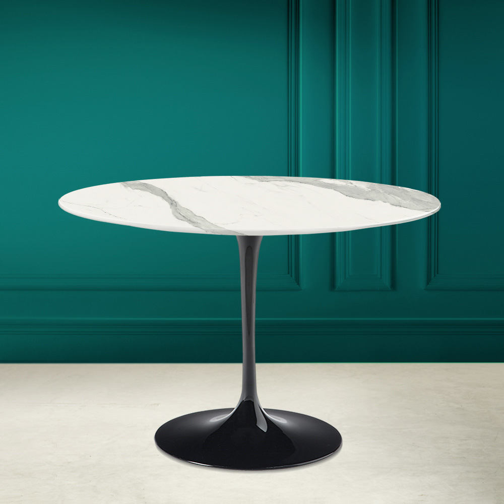 Tavolinë e rrumbullakët e ngrënies me majë qeramike me venë të plotë, efekt statujash me venë kalimtare mat dhe bazë alumini të lëmuar tërësisht Prodhuar në Itali. Kjo tabelë kombinon funksionalitetin dhe elegancën falë materialeve të përdorura për ndërtimin e saj. Qeramika statuario me venë të plotë ka vena moderne dhe të gjalla që i japin tryezës një prekje origjinale dhe të rafinuar dhe alumini i lëmuar i bazës siguron stabilitet dhe cilësi . Ky produkt i një lloji është i përsosur për t'u përfshirë në çdo dhomë ndenjeje dhe kuzhinë me çdo stil arredimi nga modern në bashkëkohor në elegant falë përfundimeve të tij të thjeshta dhe të sofistikuara.