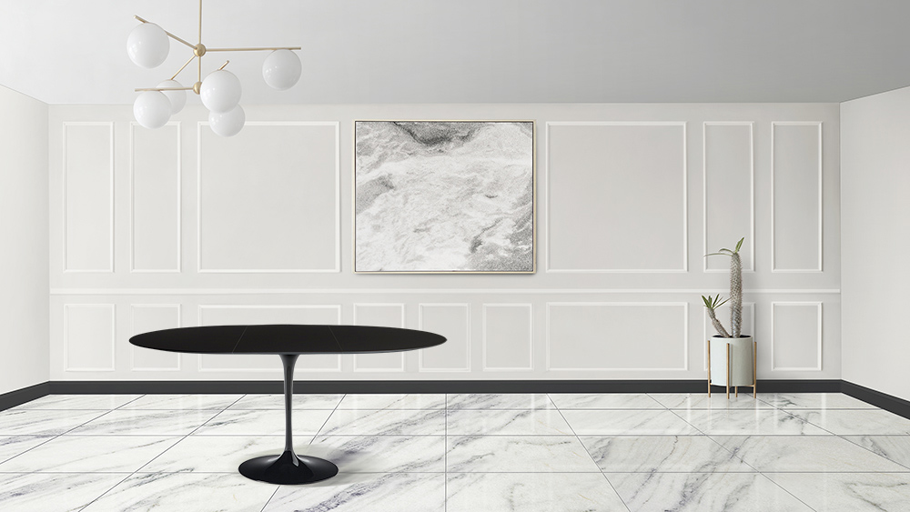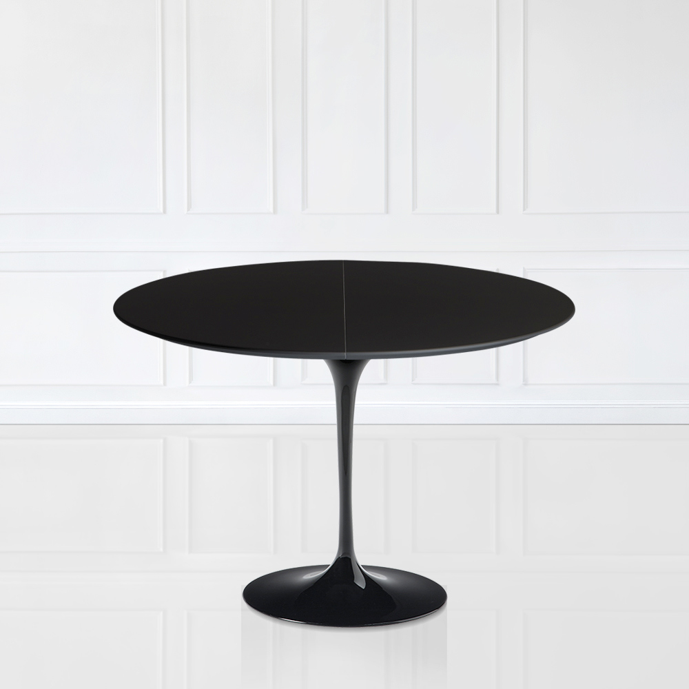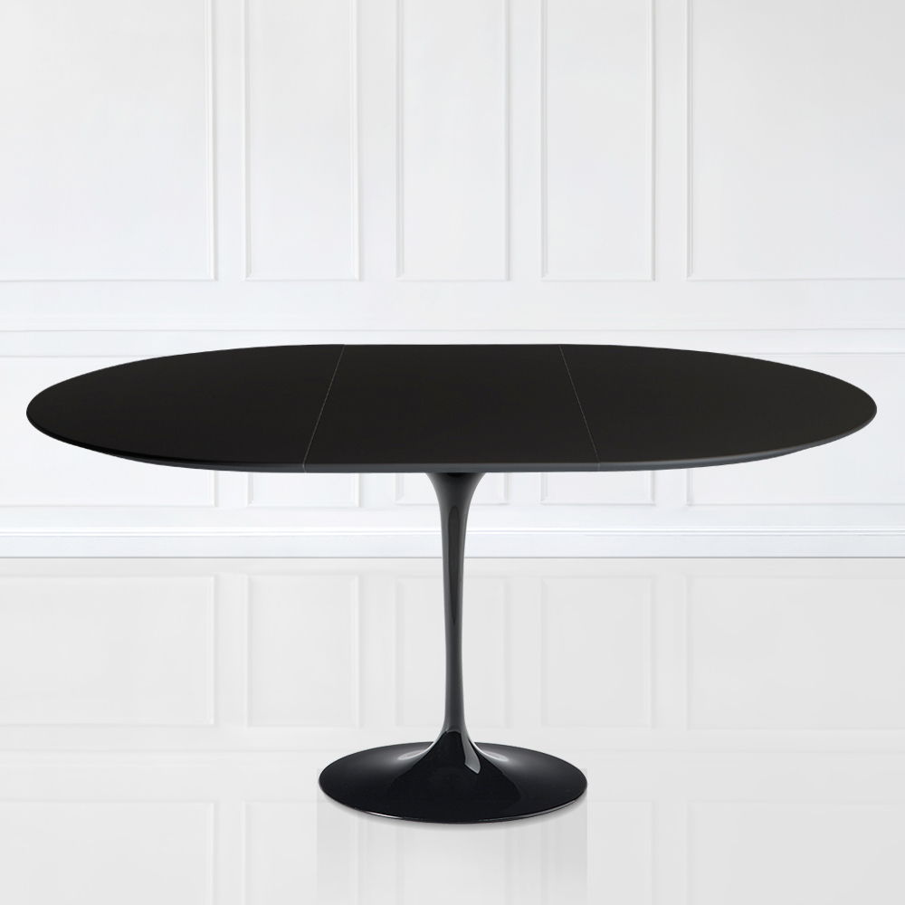 Tavolinë ngrënieje e zgjatur deri në 187 cm me majë laminate të lëngshme të zezë dhe bazë alumini të lëmuar të zezë tërësisht Prodhuar në Itali . Kjo pjesë e mobiljeve i përgjigjet nevojave të funksionalitetit dhe përshtatshmërisë së çdo ambienti të jetesës dhe kuzhinës. E rafinuar dhe me linja të thjeshta, mund të futet në të gjitha orenditë për të kompletuar më së miri çdo dhomë. Mundësia e zgjatjes e bën atë një element unik që i përgjigjet nevojës për të pasur më shumë darka, falë edhe formës së bazës që favorizon futjen e shumë karrigeve. Kjo tavolinë është ideja perfekte për të pasur diçka origjinale dhe elegante por në të njëjtën kohë të dobishme për të gjitha rastet dhe eventet.