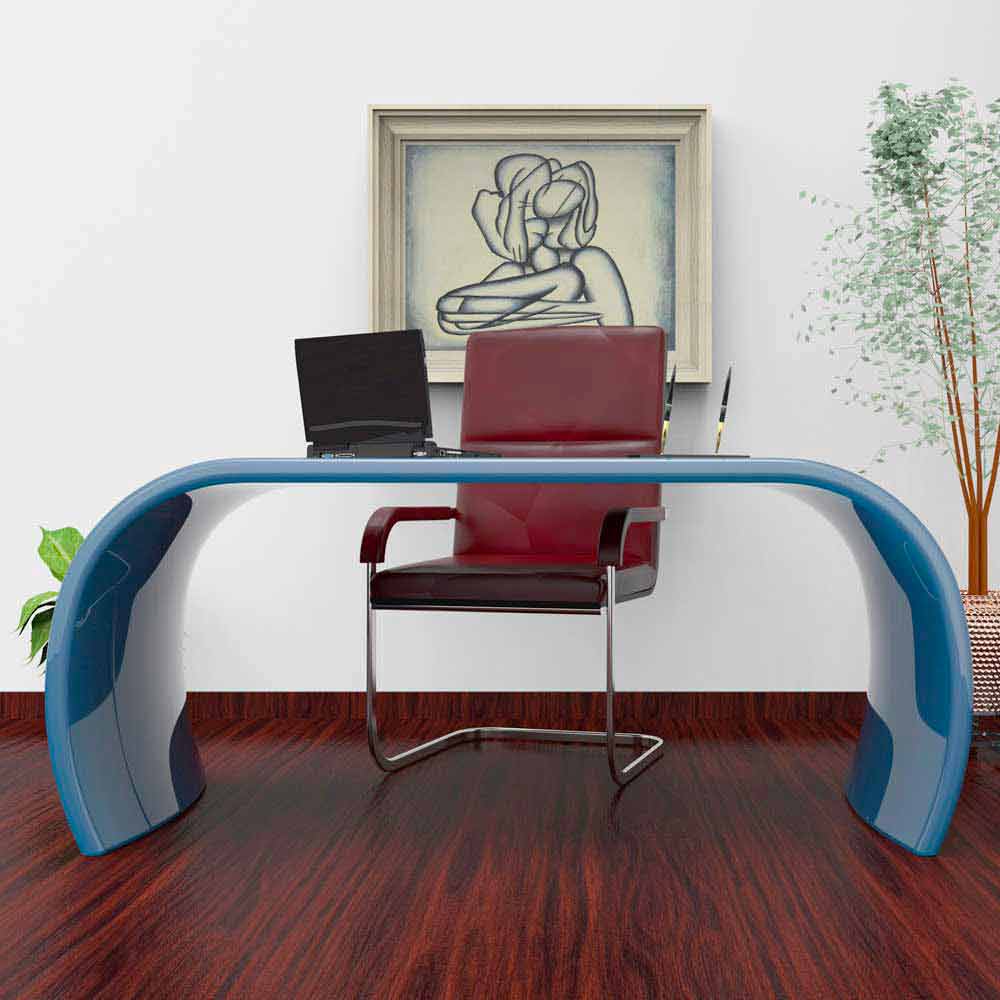 Tabela e menaxherit. Materiali: Sipërfaqja e ngurtë; Një formë sinusale, pothuajse si një valë, bëhet pjesë e jetës së përditshme të punës. Kjo tavolinë e bërë nga Solid Surface, falë formës së saj të lakuar, thyen monotominë e zyrës duke na dhënë një ambient modern dhe miqësor. Ngjyrat e tij të ndezura bëjnë që të shkojë mirë me çdo lloj ambienti, duke e mobiluar me shije. Finim i jashtëm mat me llak, përfundim i brendshëm me llak me shkëlqim. E disponueshme në variacione të ndryshme ngjyrash.