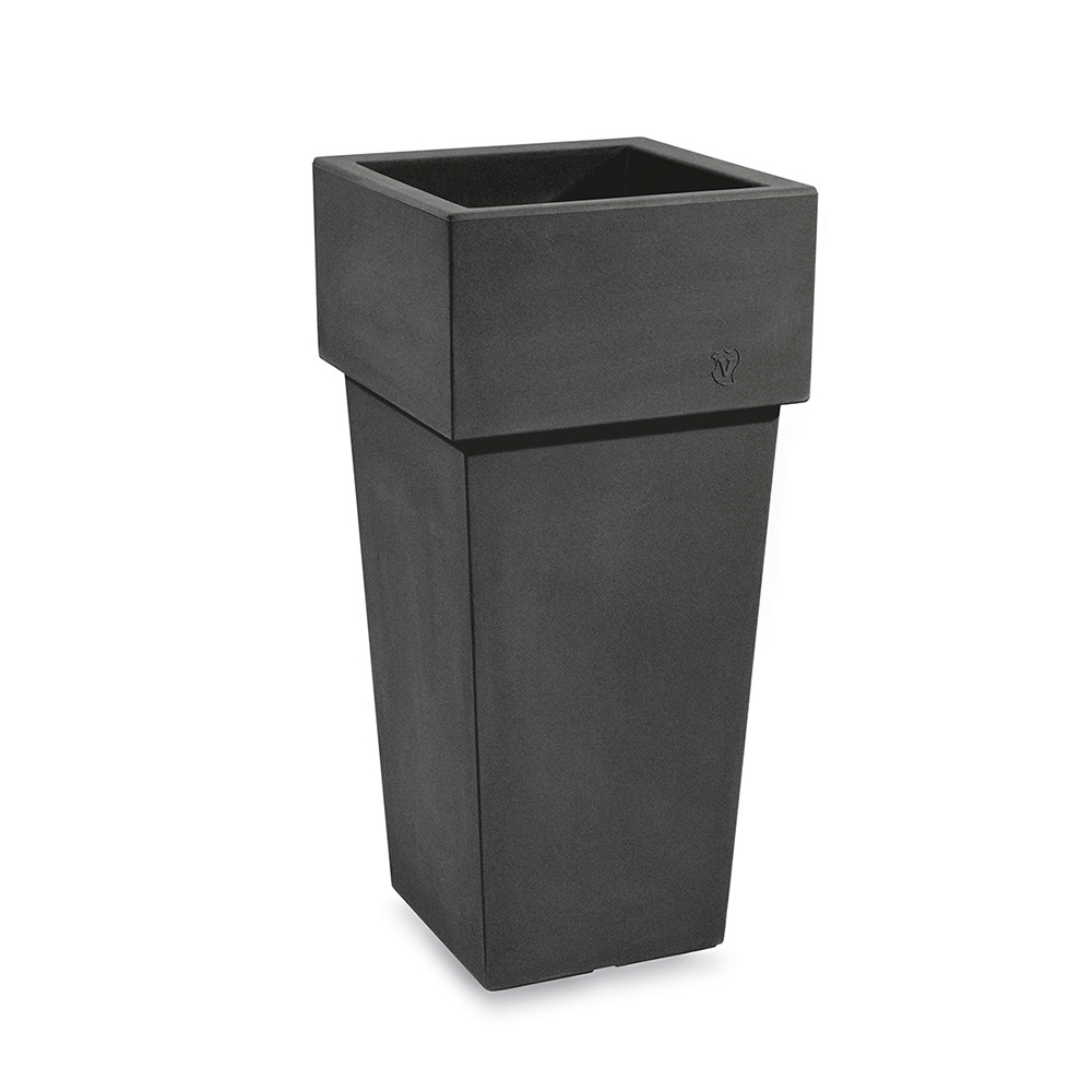 Kjo vazo e jashtme e prodhuar në Itali nga polietileni është një aksesor mobilimi me një personalitet të fortë modern . Forma e fortë dhe në dukje klasike është e përfunduar në pjesën e sipërme nga skajet e përforcuara të cilat i japin kompaktësi produktit pa lënë në hije pamjen elegante që vjen prej tij.