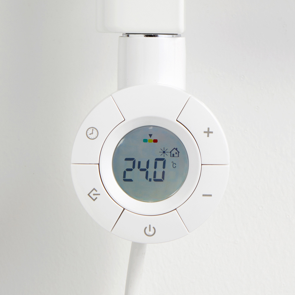 I kompletuar me kontroll të temperaturës, datë dhe orë, zgjedhje të modalitetit (Eko, Dritare e hapur, Komfort, Antifriz, Natë. Kohëmatës 2-orësh) tregues ON.