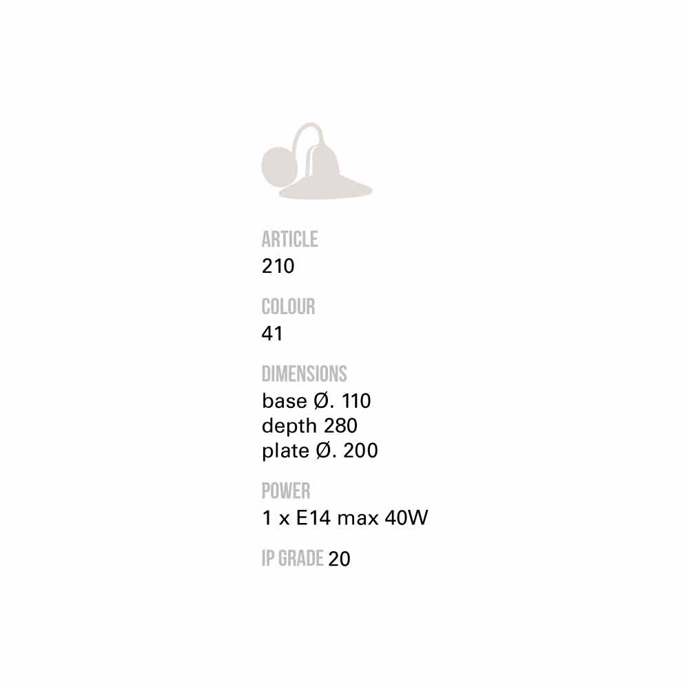 Toscot Asiago Llambë murale e punuar me dorë Terracotta e bërë në Toscana Në dispozicion në hije të ndryshme, pa asnjë ndryshim në çmim. Shikoni grafikun e ngjyrave dhe shkruani në kuti kodin e ngjyrës së dëshiruar. Dimensionet: Baza Ø11 SP28 Pllaka 20 Llamba: 1 x E14 max 42W nuk përfshihen IP: 20 Toscot krijon modele që ndërthurin traditën toskanike të formave të hedhura me dorë dhe zbukurimet, duke filluar nga stilet klasike deri tek ato bashkëkohore. Këto produkte unike të bëra me dorë janë bërë me materiale me cilësi të lartë dhe me një vëmendje të veçantë për shkathtësinë e tyre të përdorimit. Kujdesi për dekorimet dhe përfundimet u japin produkteve një vlerë të veçantë. Hulumtimi krijues, i cili është në bazë të realizimit të tyre, i shndërron ato në zgjidhje bashkëkohore të dizajnit të brendshëm.