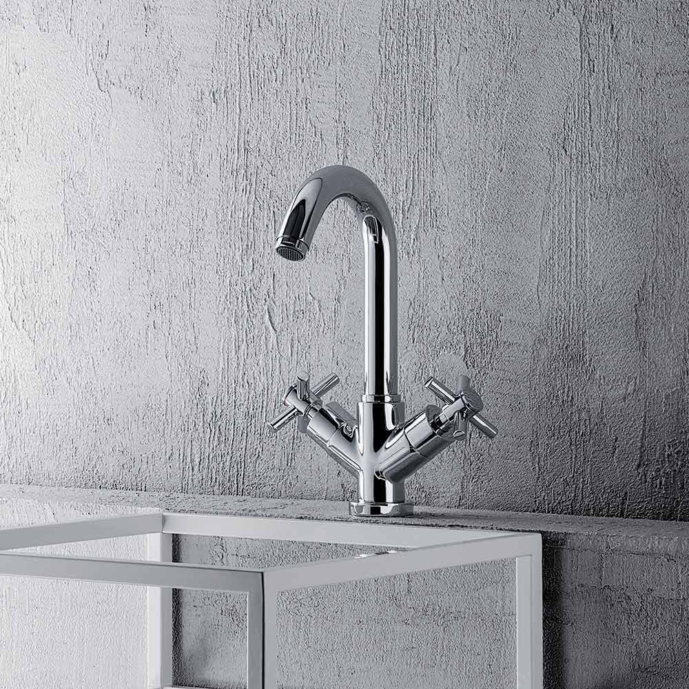 Mikser me një vrimë për lavamanin e banjës në bronz të kromuar me kullues 1 "1/4 i kompletuar me vidë. Linjat klasike dhe një stil krejtësisht tradicional karakterizojnë këtë produkt me një shije retro me një dizajn të rishikuar në një çelës bashkëkohor për t'i dhënë jetë një orendi unike që mund të kryejë funksionin e saj në mënyrë të patëmetë duke kontribuar në të njëjtën kohë në pasurimin dhe rritjen e vlerës estetike . të dhomës falë elegancës së saj.